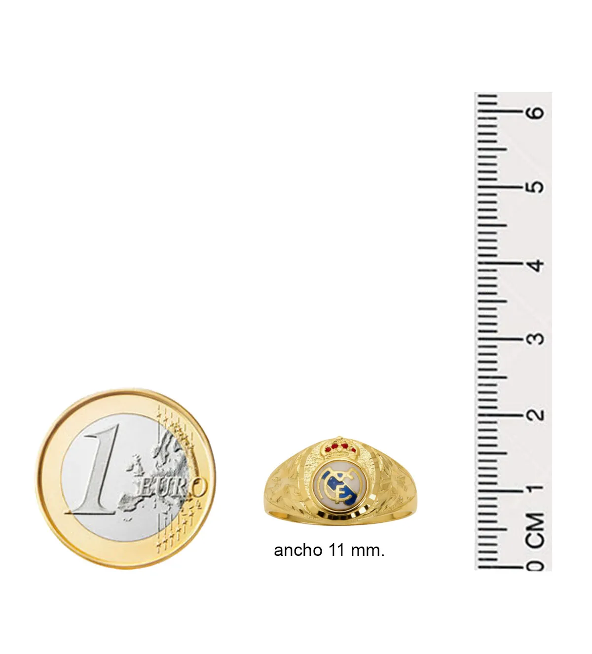 El escudo del Real Madrid simboliza pasión, superación y orgullo por un equipo histórico a nivel mundial. Llevarlo en un anillo de oro añade un valor emocional especial: representa identidad, fidelidad y un vínculo eterno con el club. Además, el oro amarillo es un metal asociado a la prosperidad, la energía positiva y la buena fortuna, por lo que esta sortija fusiona tradición joyera con simbolismo deportivo de manera única.