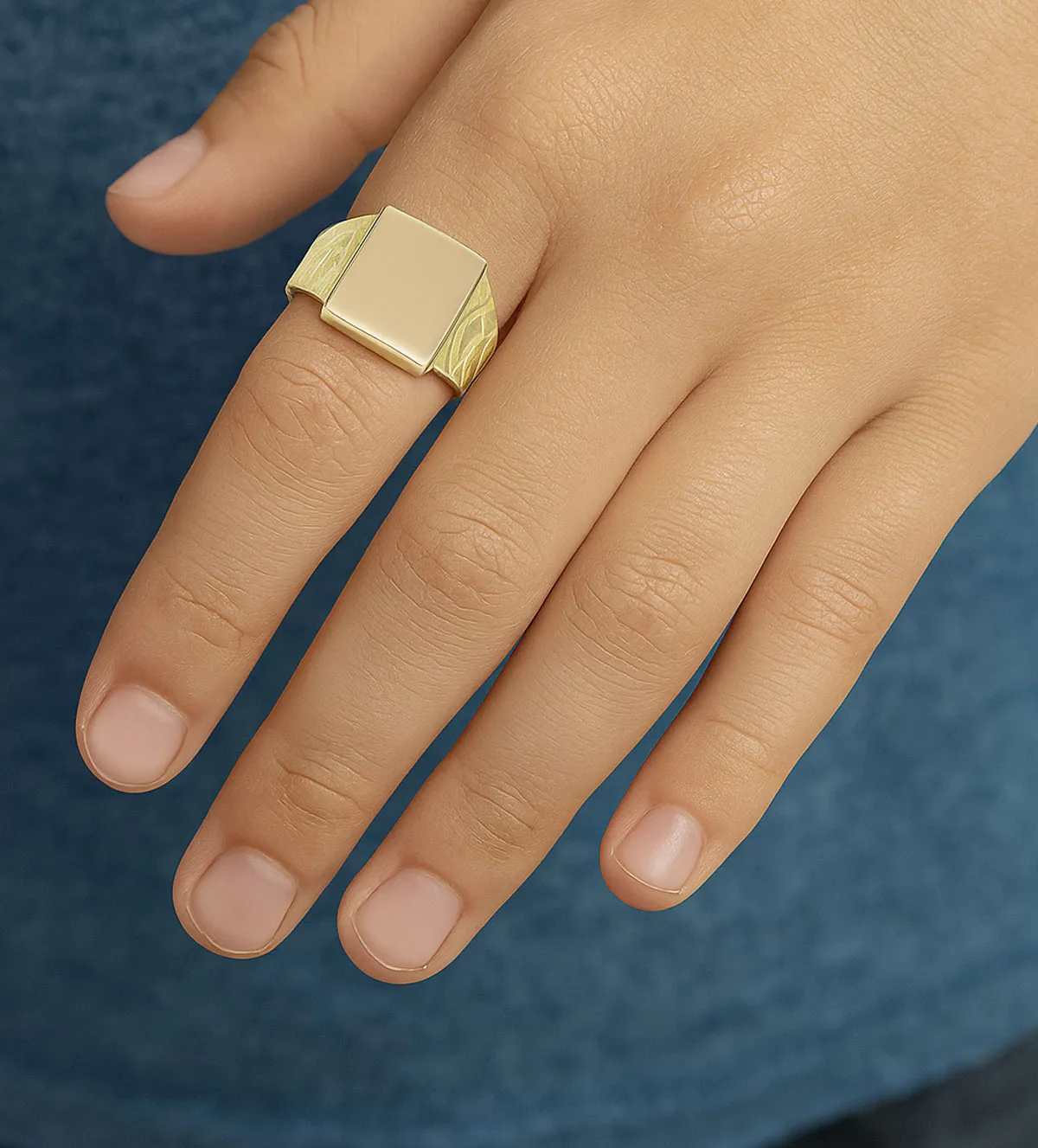 Anillo de oro para niño con grabado destacado y gran durabilidad