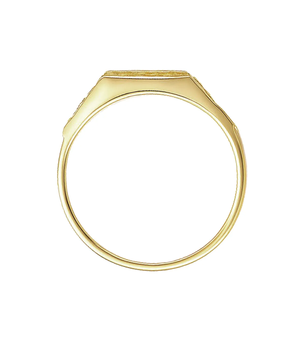 Anillo de oro para brillar en un día inolvidable. Elaborado en oro amarillo 18 ktes. con diseño macizo y cabeza cuadrada perfecta para grabar iniciales, es el regalo ideal para su Primera Comunión. El relieve del brazo aporta un toque elegante y personal. Añade un detalle único que guardará para siempre. Es una pieza maciza muy sólida y fuerte.