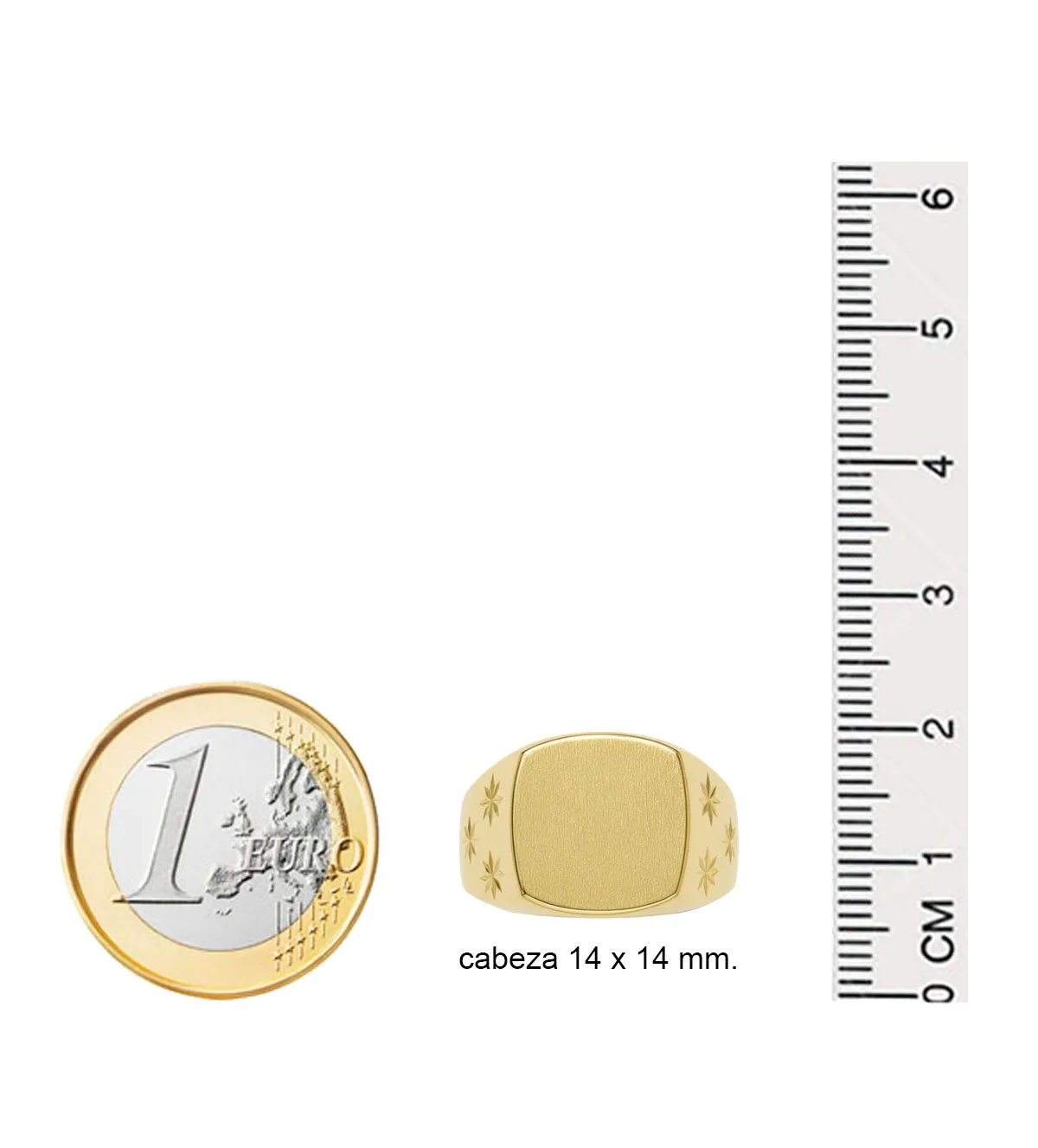 Además, el diseño lapidado del brazo aporta un toque artesanal que diferencia este anillo de oro de cualquier otro sello convencional.