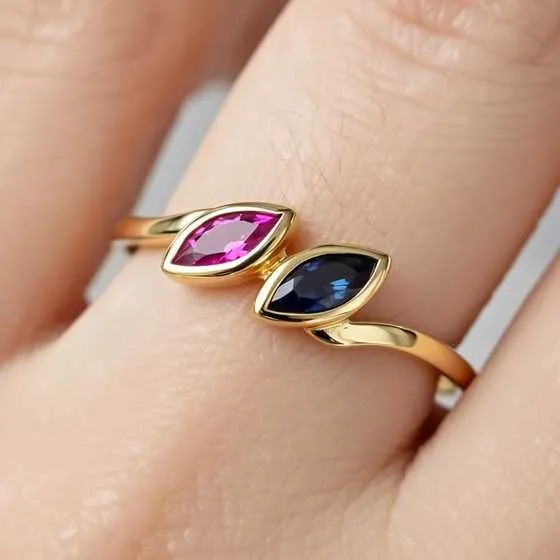 Sortija de oro elegante con rubí y zafiro, un detalle único para brillar cada día