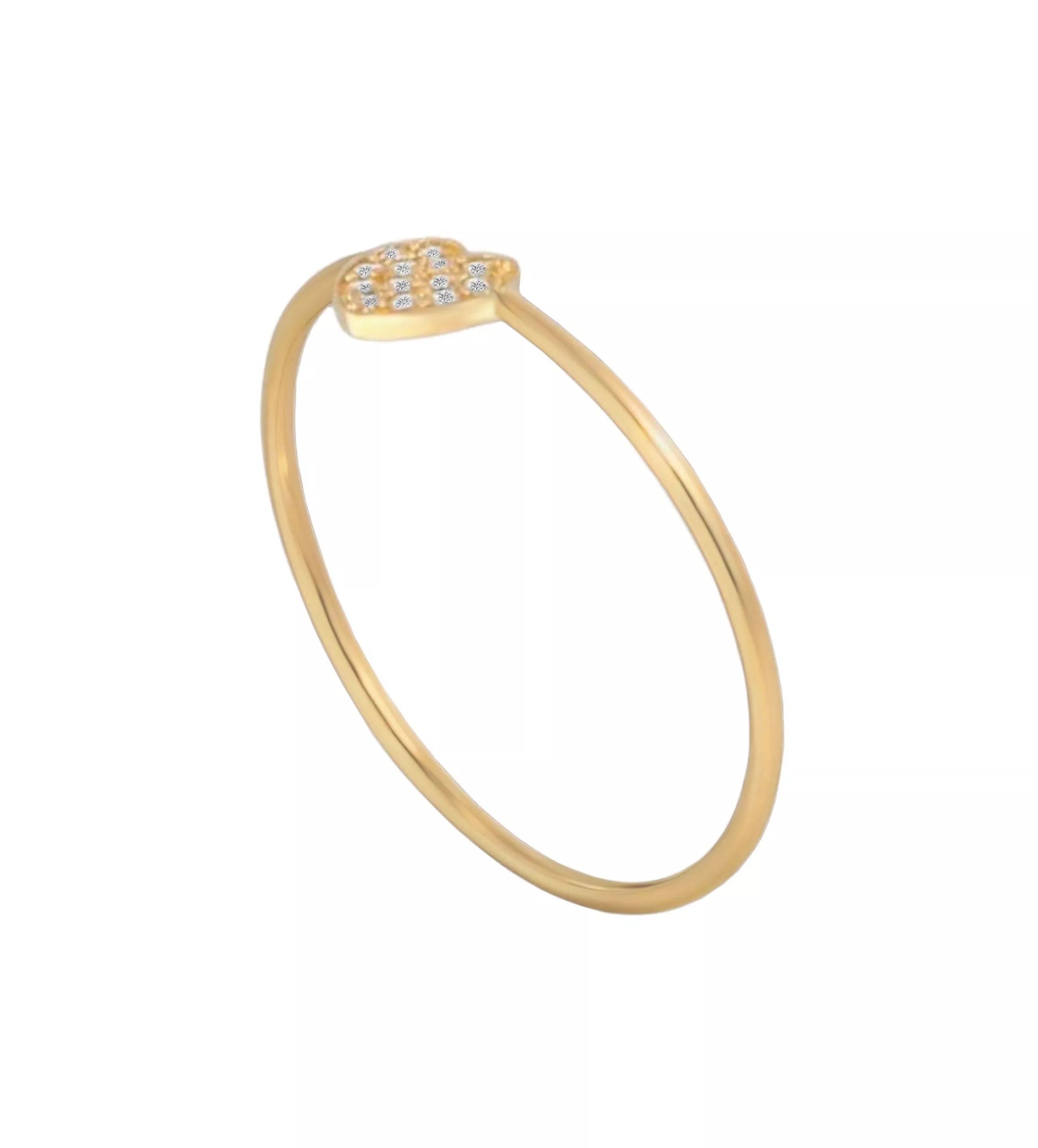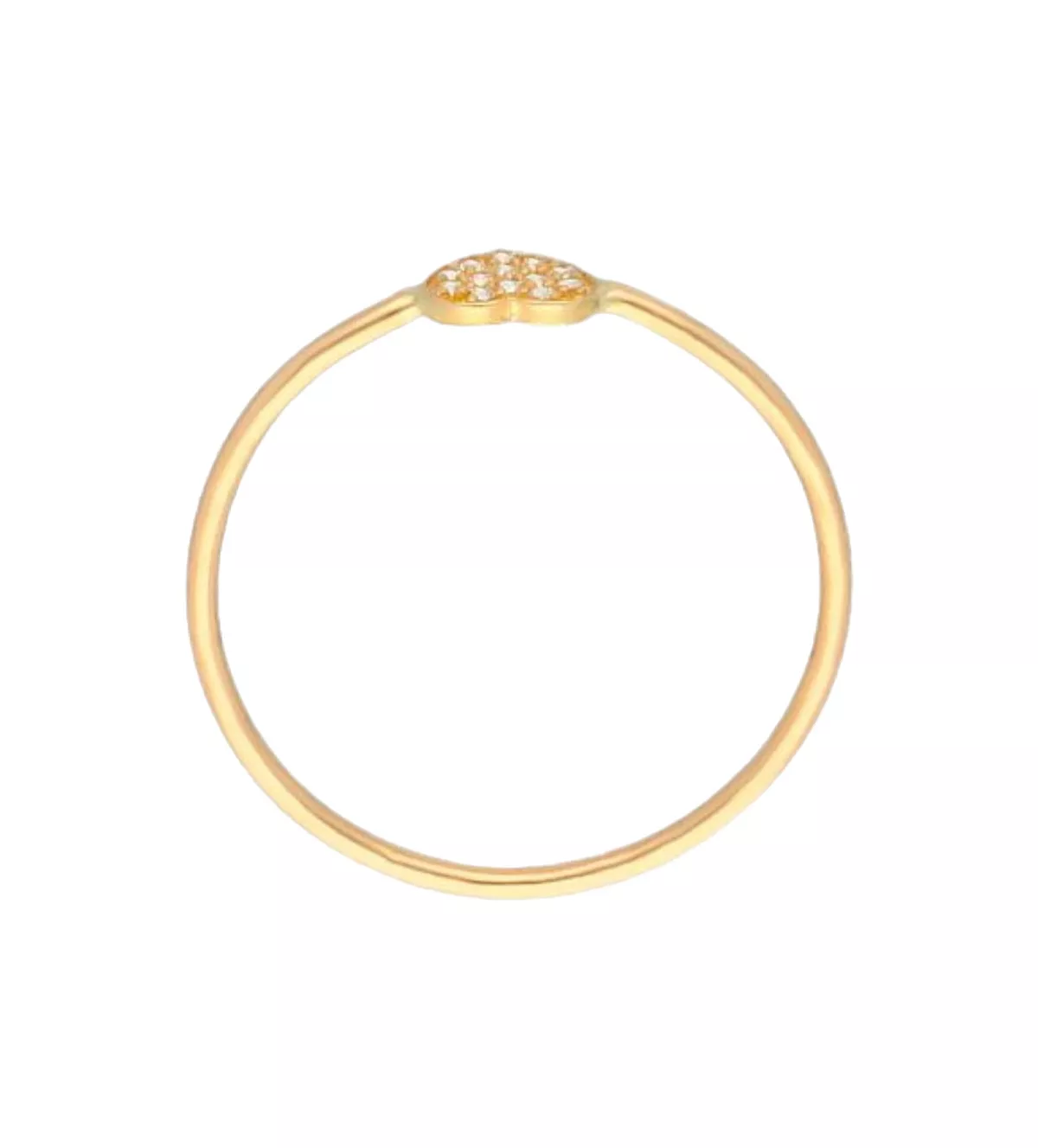 Sortija mujer oro amarillo 18 ktes y circonitas, motivo en forma de corazón cuajado de pequeñas circonitas sobre un brazo de hilo redondo.