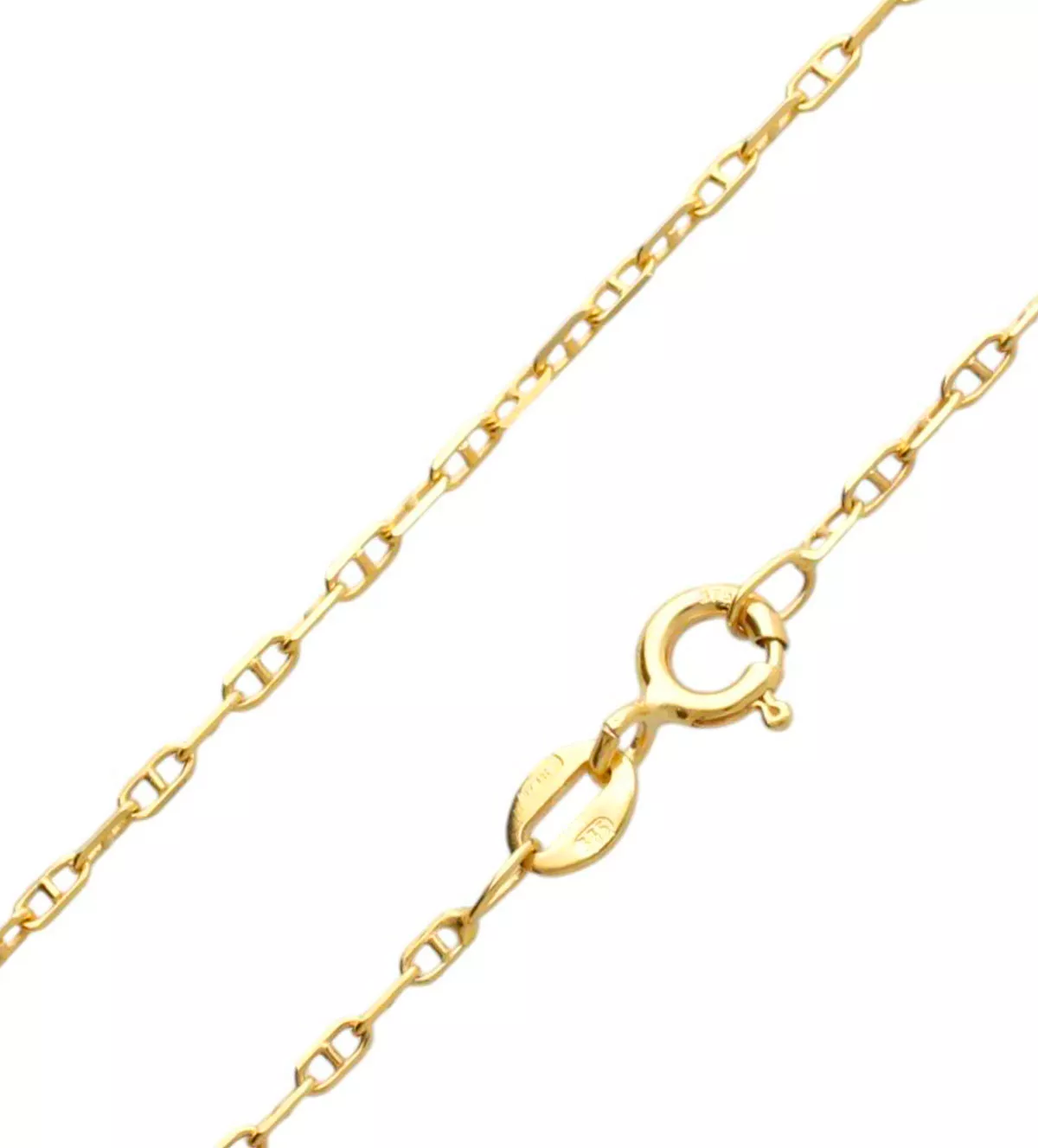 Si buscas una cadena de oro que combine elegancia y exclusividad, esta pieza es para ti. Con eslabones tipo ancla forzada, su diseño poco común la hace destacar entre otras joyas. Perfecta para hombres y mujeres, esta cadena de oro 18K es una declaración de estilo y sofisticación. Con disponibilidad inmediata, no dejes pasar la oportunidad de tenerla en tu colección.