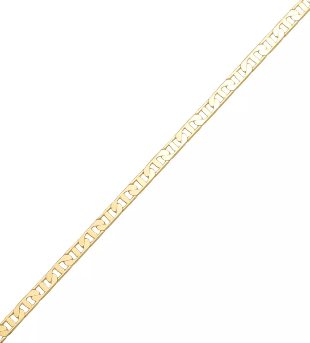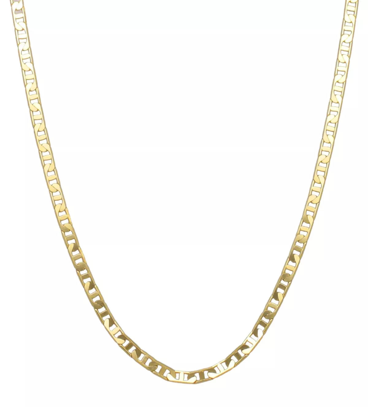 Fabricada en oro de 9K, esta cadena combina belleza y funcionalidad. El oro de 9K es conocido por su mayor resistencia frente al desgaste, lo que lo convierte en una opción ideal para joyas de uso diario. Además, su precio más accesible permite disfrutar de la elegancia del oro sin comprometer la calidad ni el presupuesto. Cada eslabón ancla plano ha sido diseñado con precisión, asegurando un acabado pulido que resalta el característico brillo del oro.