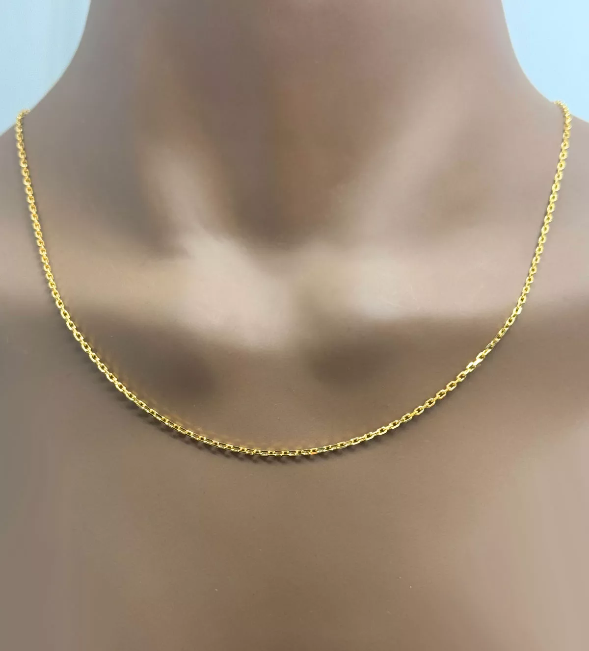 Elaborada en oro amarillo de 9 o 18 kilates, esta cadena destaca por su brillo y durabilidad. El oro es un metal precioso, hipoalergénico y resistente a la corrosión, lo que asegura una joya que conservará su belleza a lo largo del tiempo.