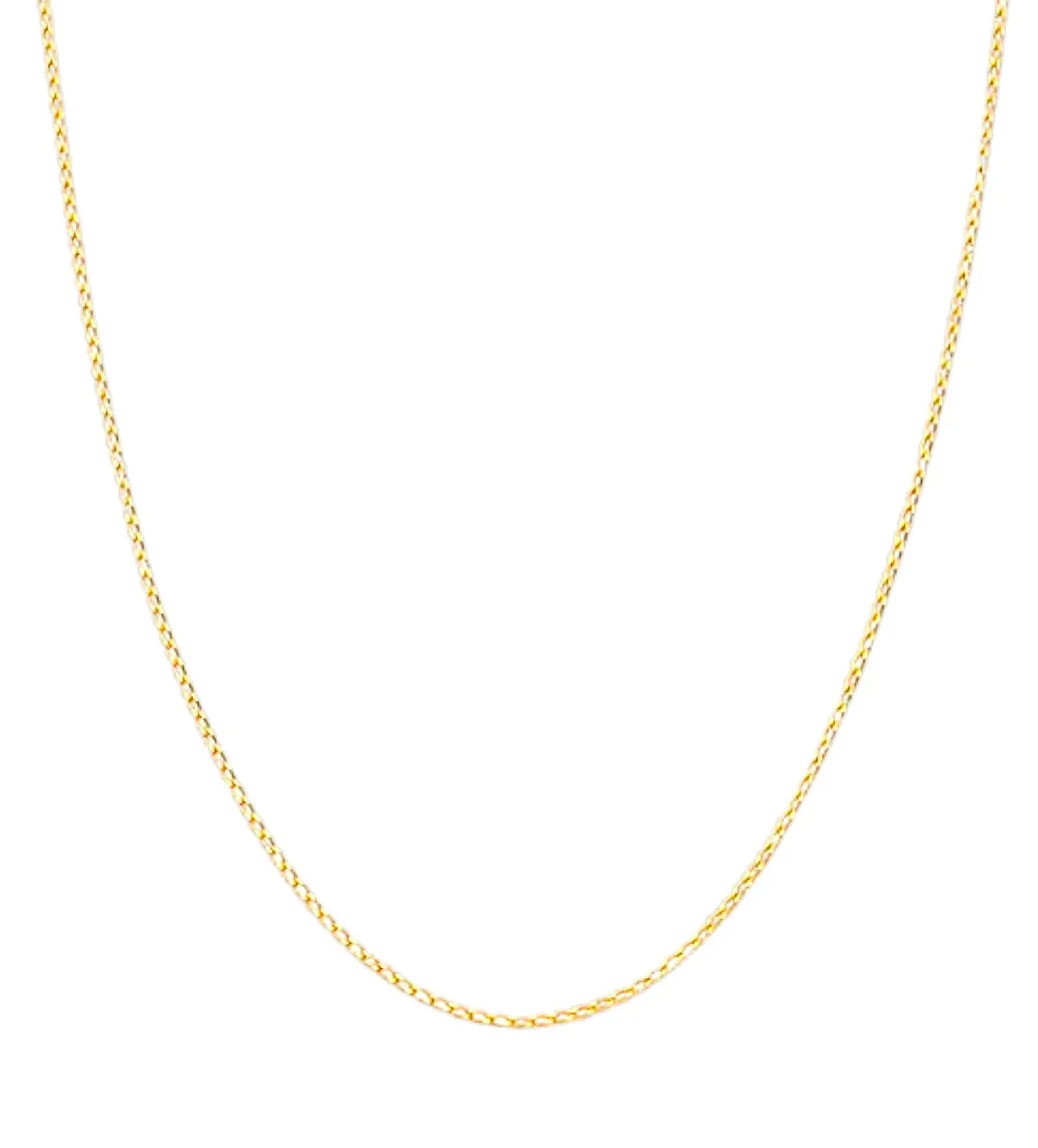 Disponible en varios largos, esta cadena de oro se adapta a distintos estilos y preferencias. Puedes usarla sola para un look minimalista o combinarla con colgantes para un toque más personalizado.