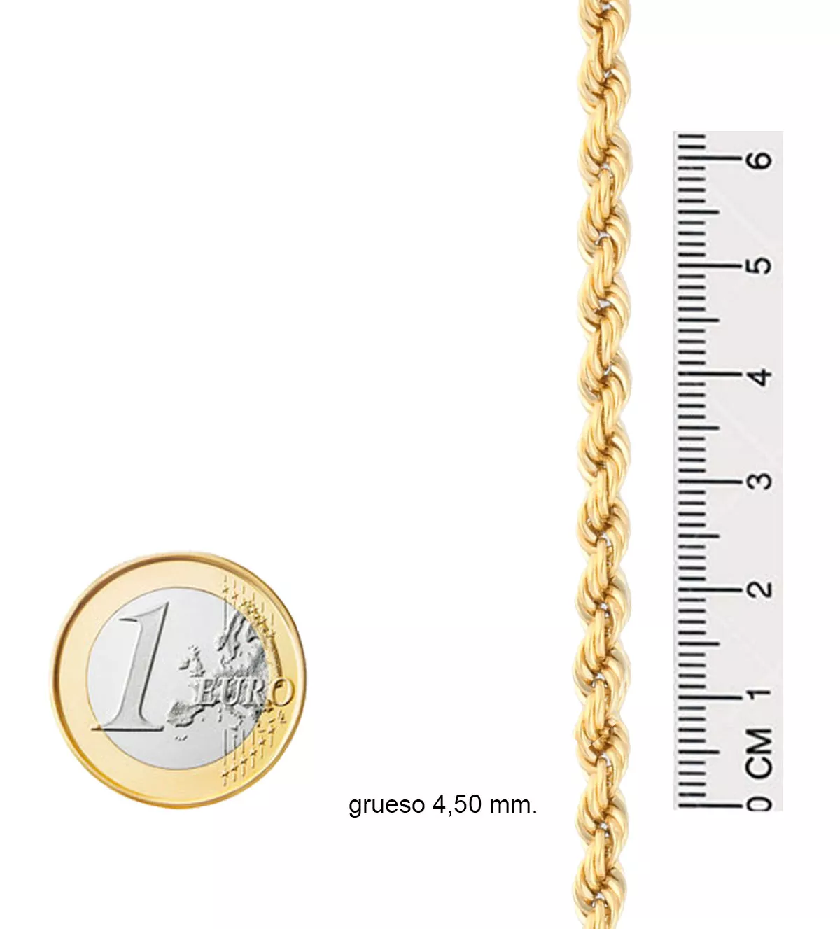 Esta cadena está fabricada en oro de primera ley, garantizando su calidad y durabilidad.