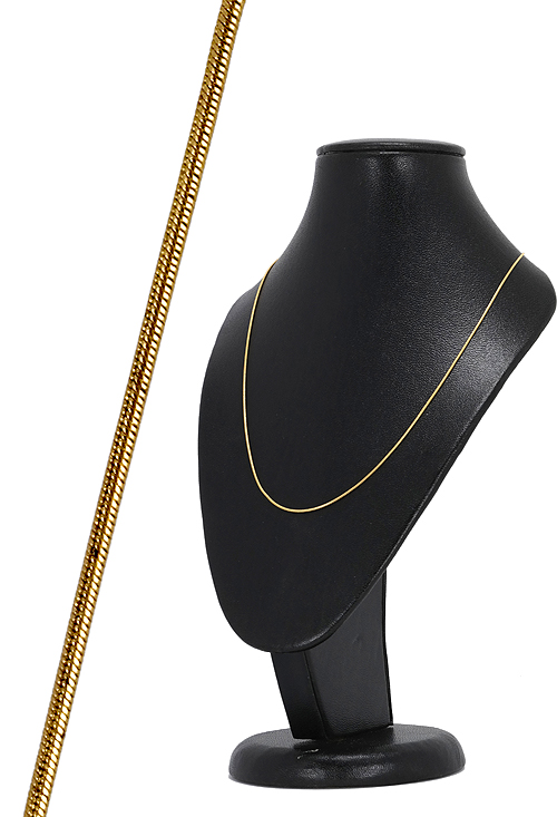 Cadena oro amarillo 18 ktes 1ª ley (750 mmas) modelo cordoncillo cola de topo con cierre de seguridad tipo mosquete, mide de largo 45 centímetros y tiene un peso de 3,20 gramos, es una perfecta gargantilla para utilizar con chatones, purezas u otros tipos de colgantes, la terminación es con acabado brillo pulido.