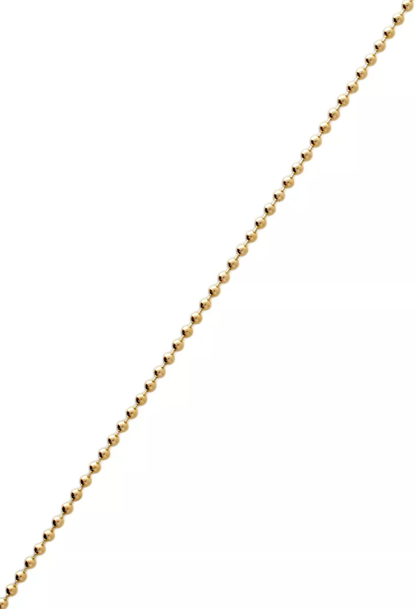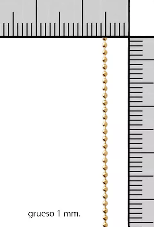 Cadena oro amarillo 18K modelo bolas, ¡Luce espectacular con nuestra cadena de oro 18k! este modelo de bolas es el accesorio perfecto para cualquier ocasión, ya sea casual o elegante, con 45 cm de largo, puedes usarla como gargantilla y destacar tu belleza al máximo. Además, su cierre tipo reasa te garantiza seguridad y comodidad en todo momento. ¡No esperes más para hacerte con esta joya imprescindible en tu colección!