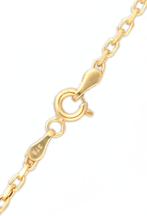 Cadena de oro amarillo 9 kilates (375 milésimas) eslabones forzados con cierre de seguridad tipo reasa, los eslabones de esta cadena estan elaborados con oro de tercera ley, 9 ktes 375 milésimas, estos elabones son huecos y esto propicia que esta cadena tenga un precios asequible para cualquier bolsillo.