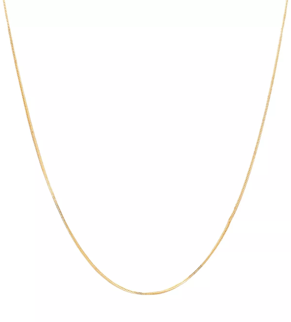Con una longitud de 40 cm, esta cadena se ajusta de manera cómoda al cuello, quedando como una gargantilla que resalta la zona del escote de forma elegante. Su diseño permite que se luzca sola, aunque también es ideal para complementar con un colgante, dando un toque adicional de sofisticación. La estructura del cordoncillo cuadrado ofrece un grosor suficiente para que destaque sin ser demasiado llamativa, logrando un equilibrio perfecto entre discreción y presencia.