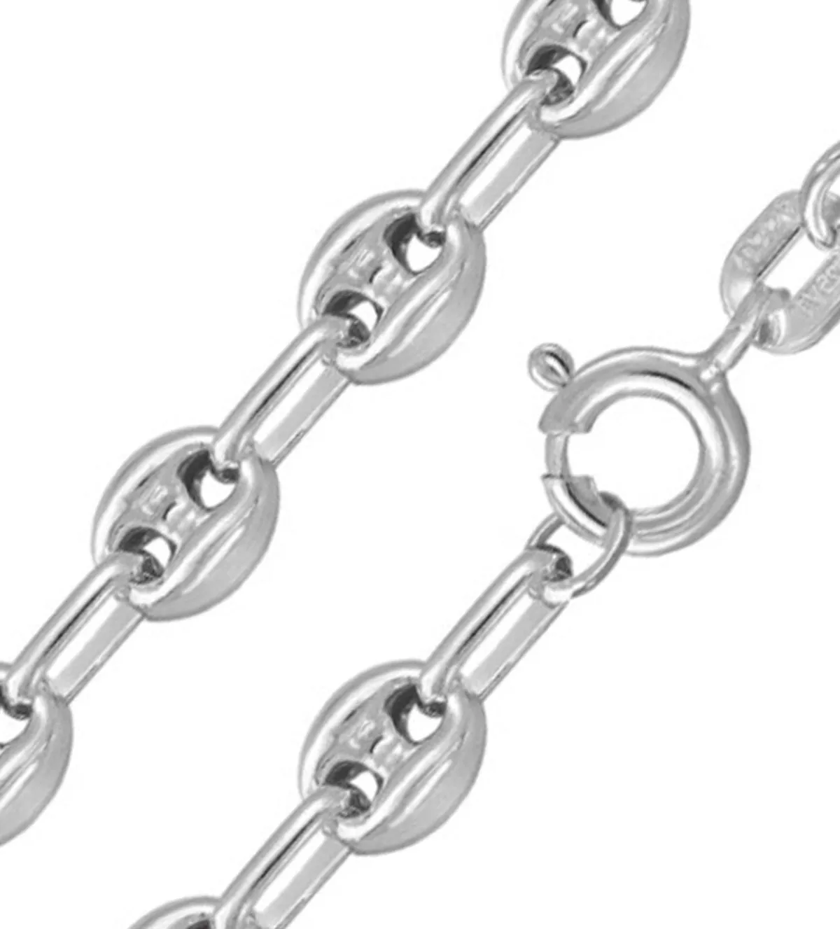 Descubre esta impresionante cadena de plata ley 925 con eslabones macizos de 8×10 mm y un diseño brillante que combina elegancia y resistencia. Con una longitud de 50 cm, peso de 21,70 g y cierre de mosquetón seguro, es ideal para llevar sola o con colgantes grandes. Este accesorio unisex refleja estilo y calidad en cada detalle. ¡Hazla tuya hoy mismo! Producto en stock con entrega inmediata. No te pierdas esta joya única, porque su disponibilidad es limitada. ¡Compra ahora y deslumbra con cada paso!