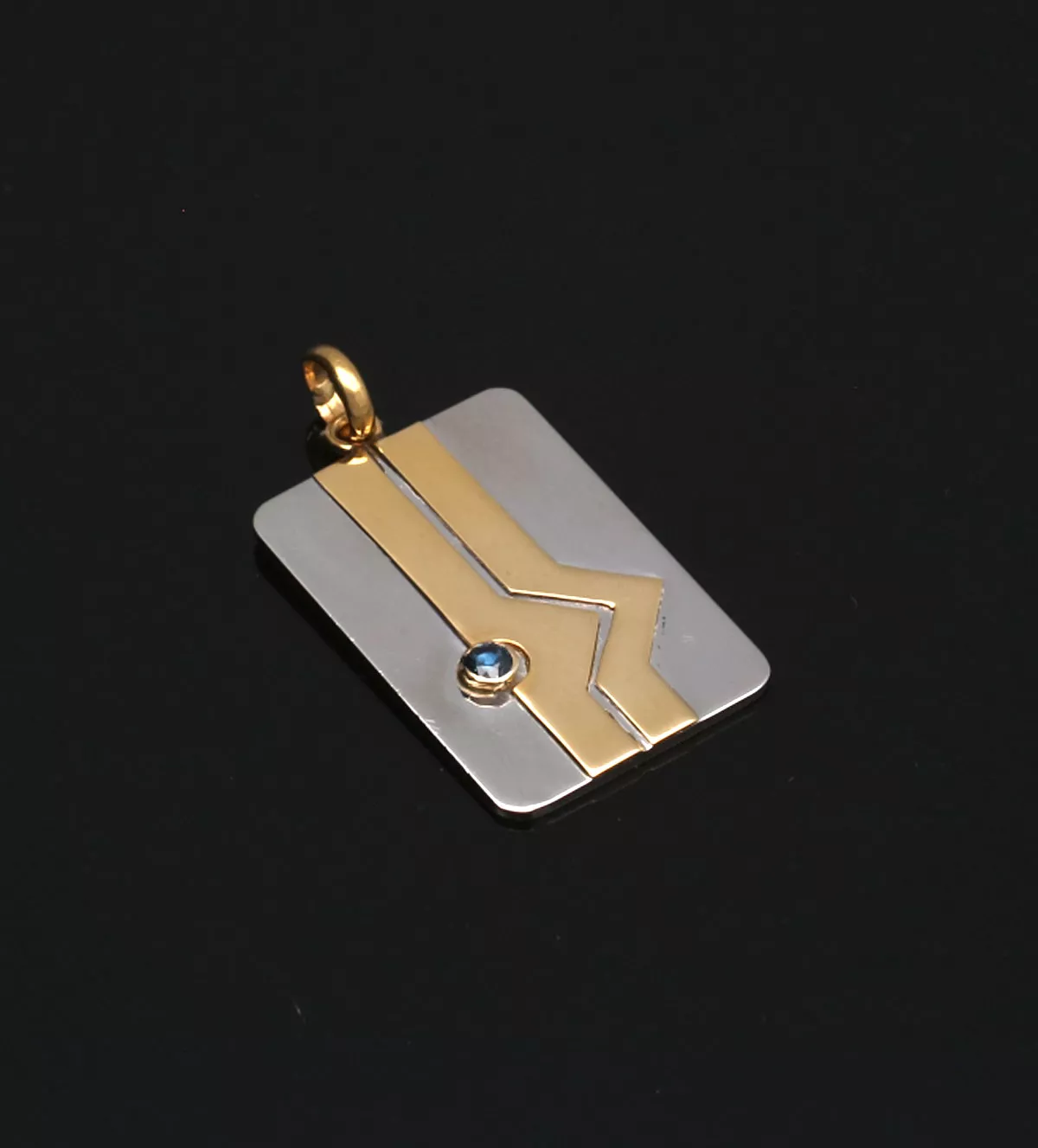 Chapa de identidad de oro y acero con zafiro