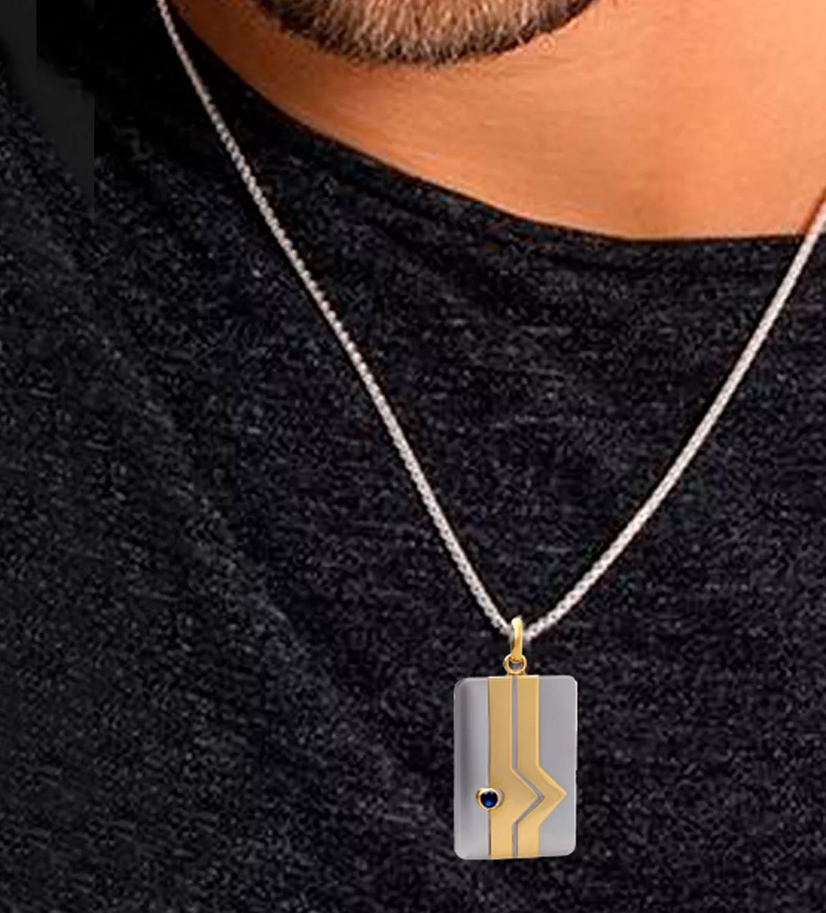 Esta chapa de identidad está fabricada en acero de alta resistencia y oro amarillo de 18 kilates (750 milésimas), garantizando durabilidad y un brillo que perdura con el tiempo. El zafiro fino, de talla redonda, es una piedra preciosa cuidadosamente seleccionada por su pureza y color vibrante. Los materiales premium aseguran que esta joya sea resistente al uso diario sin perder su belleza.