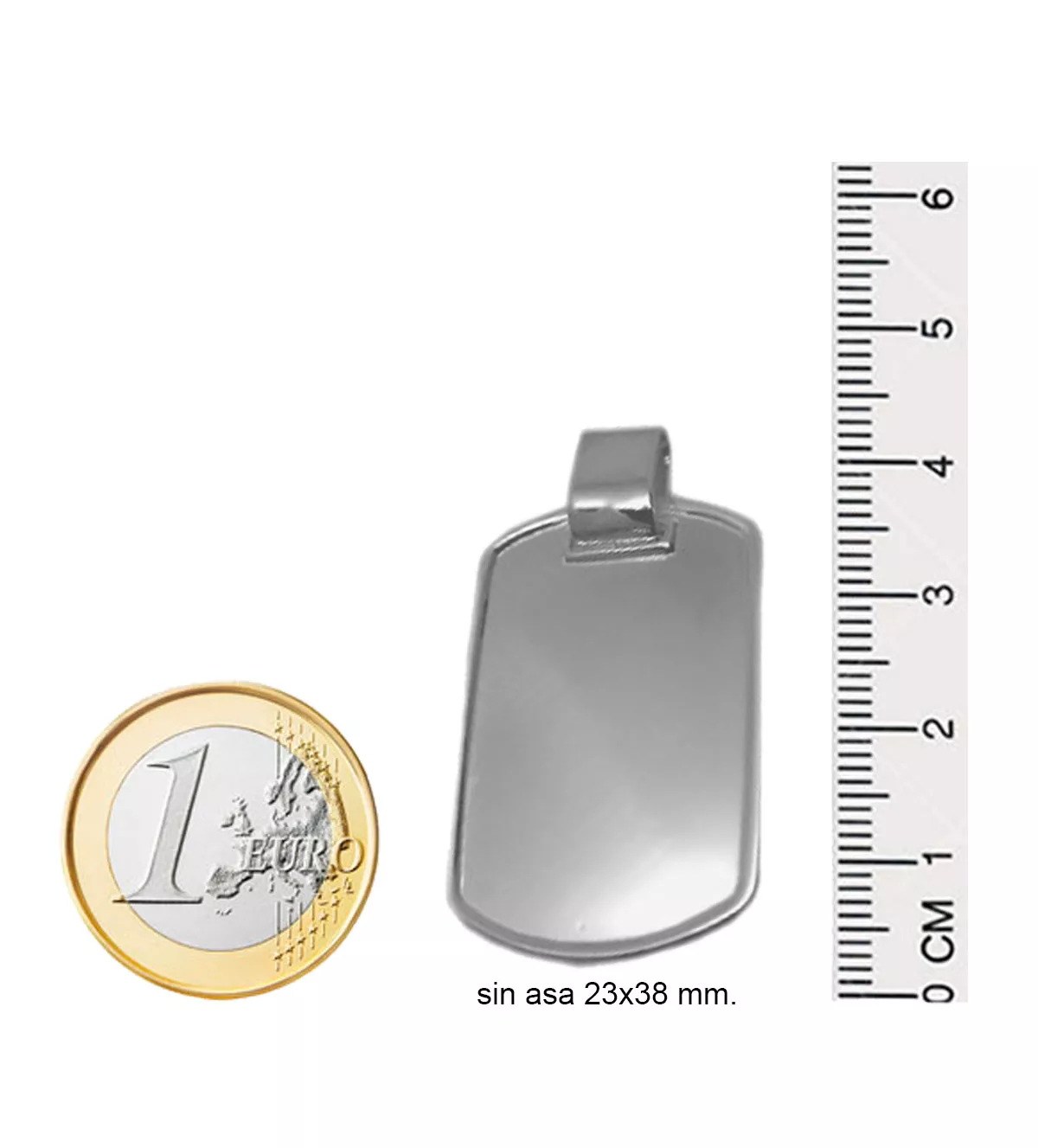 Si buscas un regalo especial y lleno de significado, nuestra chapa de inspiración militar en plata de ley es la elección perfecta. Con unas medidas de 23×32 mm y un peso de 9,80 gramos, esta sólida placa es ideal para personalizar con cualquier tipo de grabado, ya sea un mensaje personal, iniciales, o información crucial como el grupo sanguíneo y el DNI.