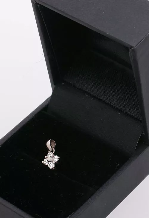 Los cuatro diamantes utilizados en esta pieza han sido seleccionados meticulosamente por su calidad y claridad. La talla brillante de los diamantes maximiza su capacidad para reflejar la luz, lo que resulta en un destello continuo y un resplandor inigualable. Cada diamante ha sido colocado con precisión para asegurar que el diseño general del colgante sea perfecto y armonioso.