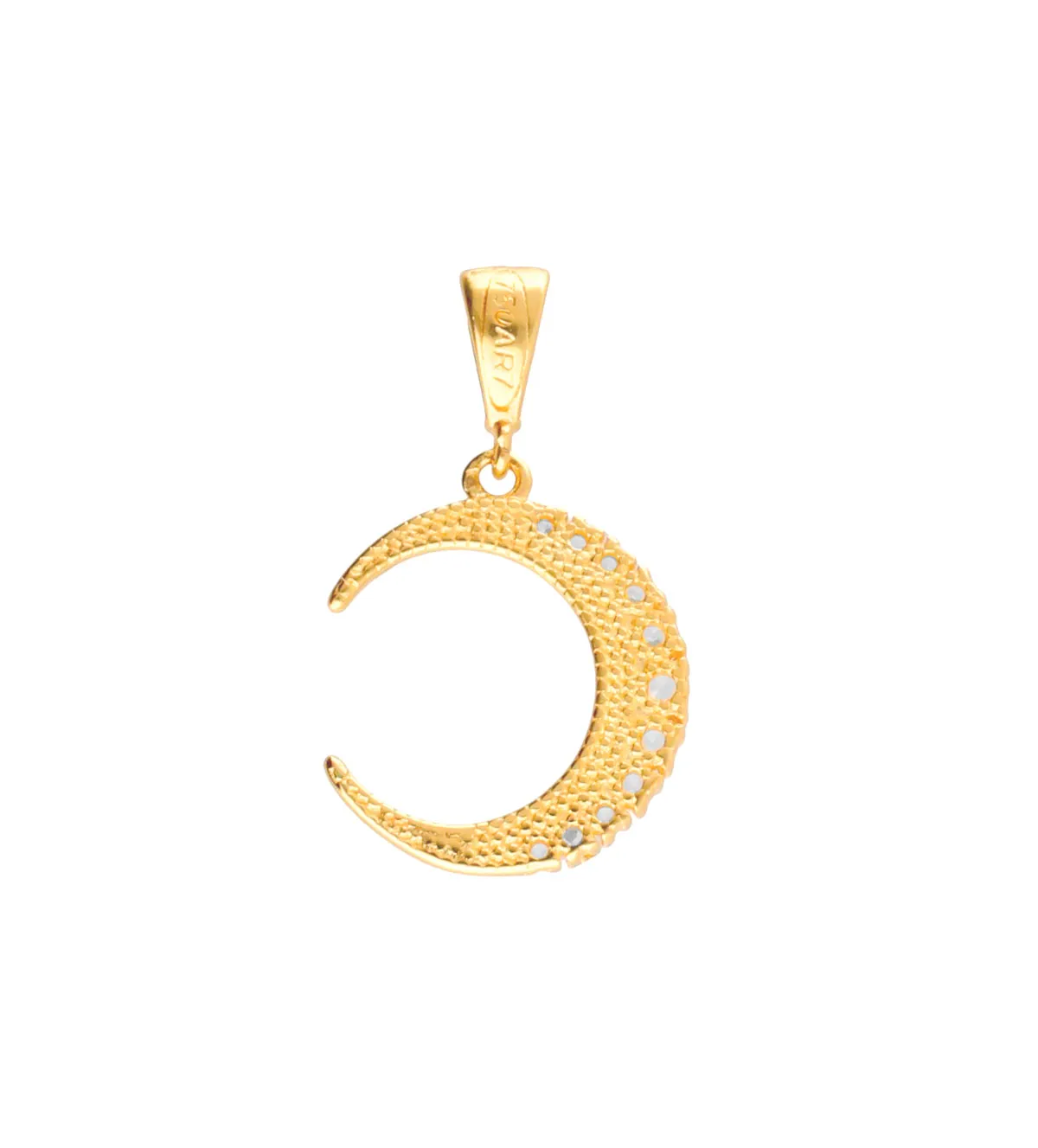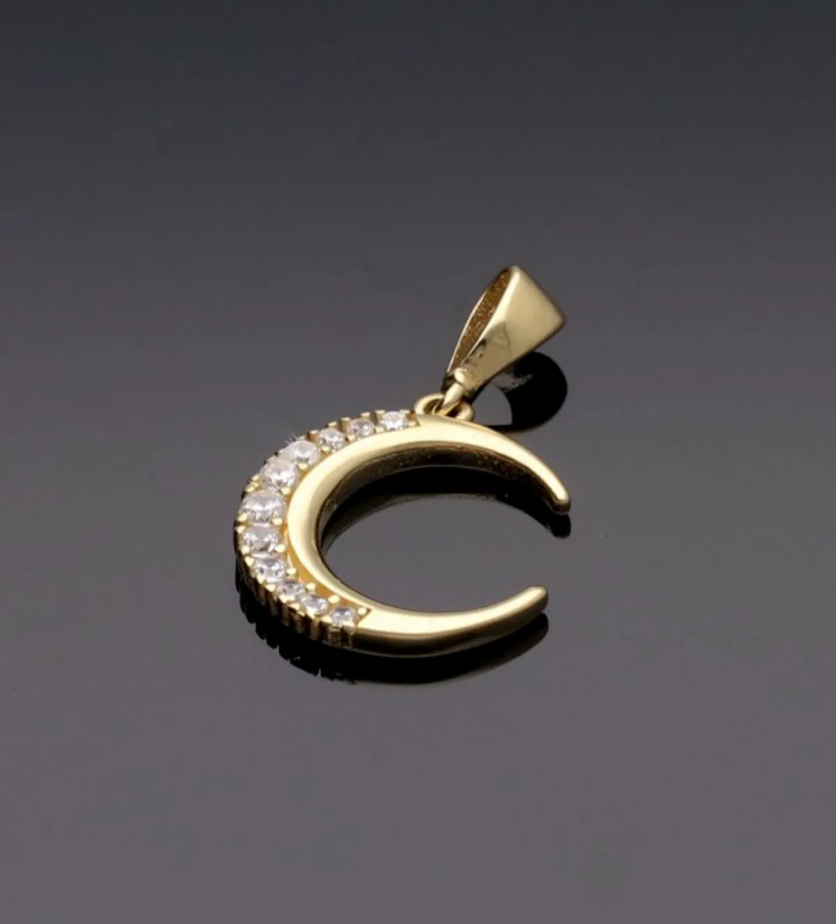 La luna, símbolo universal de intuición, crecimiento y cambios positivos, aporta un toque espiritual y emocional a esta joya. En muchas culturas, representa la protección y la guía en los momentos de transformación. Combinada con el oro —símbolo de éxito y abundancia—, este colgante se convierte en un talismán cargado de energía positiva.