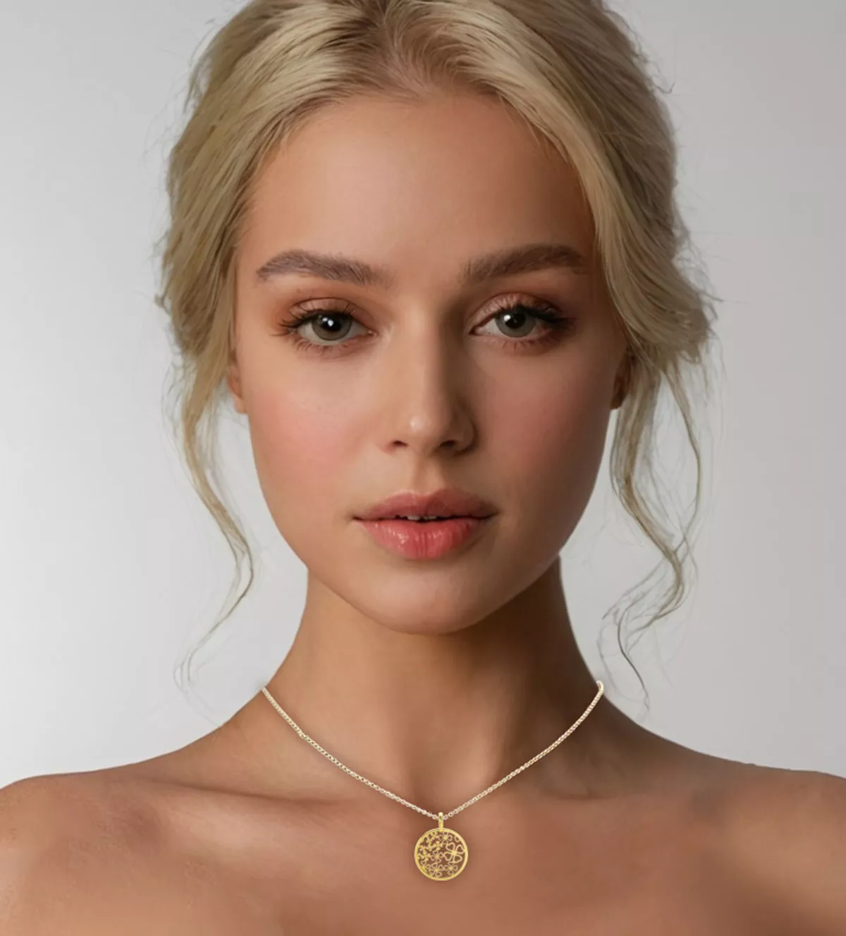 El diseño de este colgante de oro destaca por su sofisticación y exclusividad. Su forma circular y el delicado calado a láser crean una armonía visual perfecta. Este trabajo de precisión permite que la luz atraviese sus patrones, dando un efecto de luminosidad cautivador. Su acabado espejo aporta una apariencia refinada y elegante, ideal para quienes buscan una joya con un toque de modernidad sin perder la esencia clásica del oro.