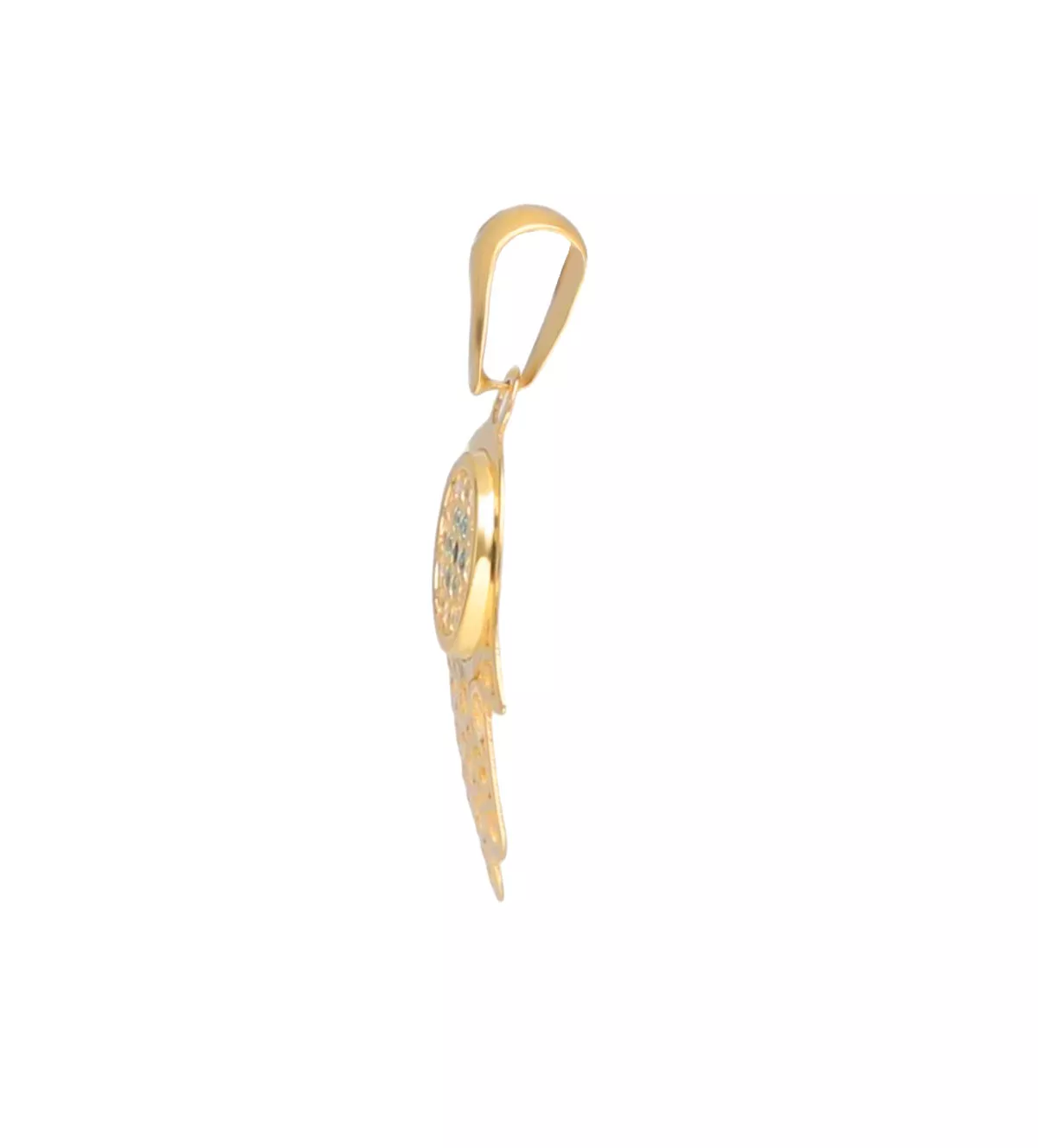 Las piedras blancas, azules y negras que decoran el colgante representan el tradicional Ojo Turco, también conocido como Nazar. Este símbolo milenario se utiliza para alejar las energías negativas y proteger contra el mal de ojo. Con estas piedras engastadas en el colgante, llevarás contigo una poderosa barrera contra cualquier influencia negativa.