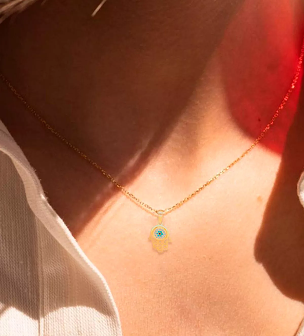 La Mano de Fátima, también conocida como Jamsa, es un símbolo antiguo que se cree que brinda protección contra el mal de ojo y atrae la buena suerte. Con nuestro colgante de oro 18 quilates, llevarás contigo esta poderosa energía protectora y encantadora, asegurando que te sientas siempre segura y protegida.