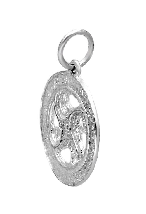 Colgante de plata trisquel, reproducción fundida de un colgante encontrado en una excavación, es el símbolo supremo de los druidas celtas, según su cultura eran los únicos que podían lucir este símbolo sagrado y mágico que para ellos representaba el aprendizaje, el pasado, el presente y el futuro. También representa el equilibrio entre cuerpo, mente y espíritu, el principio y el fin, la evolución y el crecimiento, el aprendizaje perpetuo y la eterna evolución.