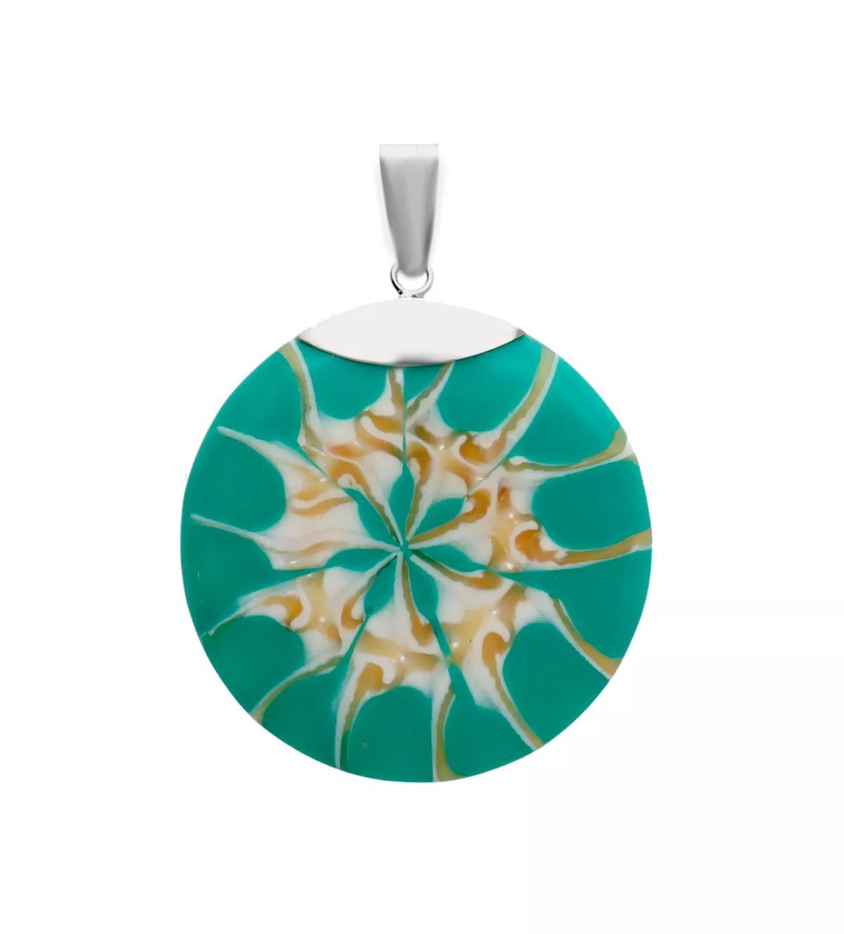 Colgante de plata con resina, diseño circular y asa escudo. Amuleto de concentración, en stock en Rubí Joyeros. ¡Cómpralo ahora con entrega inmediata!