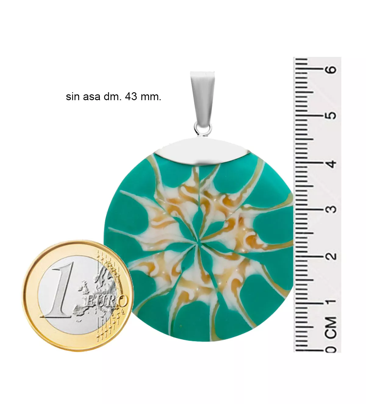 El colgante de plata mide aproximadamente 3 cm de diámetro, un tamaño perfecto para destacar sin resultar excesivo. Gracias a su asa tipo escudo, se adapta a diferentes tipos de cadenas y cordones, permitiéndote personalizar tu estilo según la ocasión.