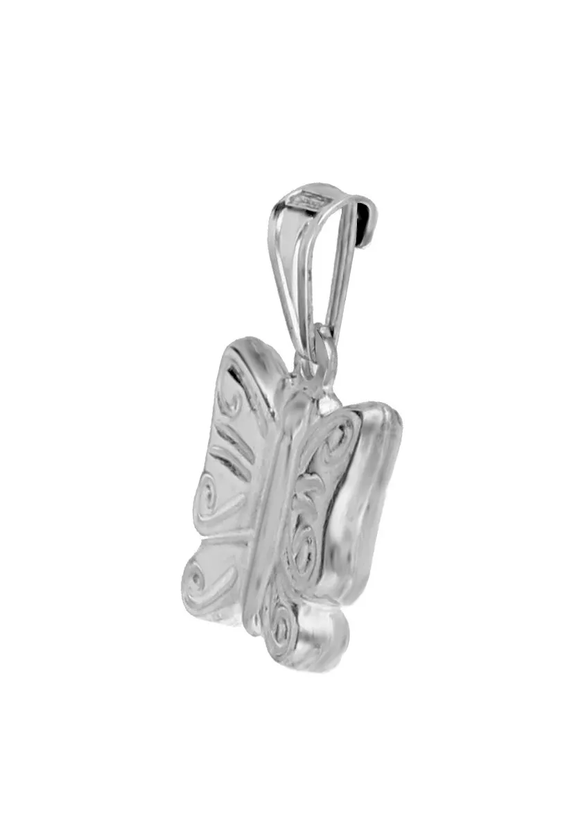 Colgante plata forma mariposa, para que tenga un bonito recuerdo de ti, nada mejor que hacerle este regalo, una bonita mariposa que simboliza el cambio de niña a mujer o cualquier otro cambio positivo y que podrá utilizar colgando de cualquier tipo de cadena gracias al asa de escudo que tiene que además esta abierta en su parte posterior haciendo que pueda ser utilizado también como fetiche de pulsera.