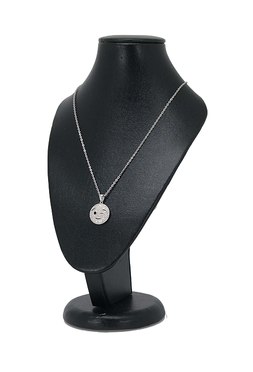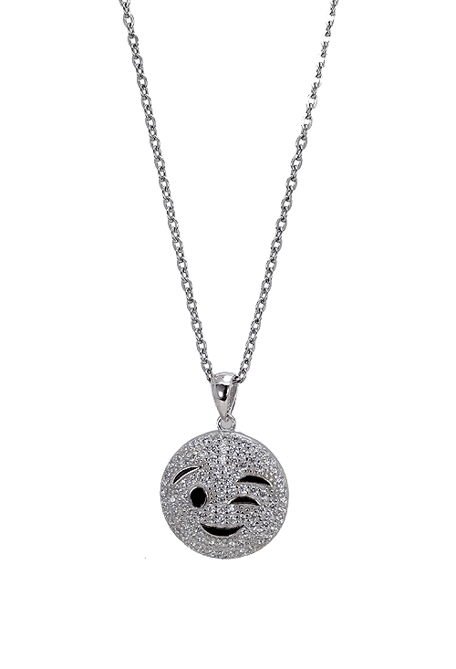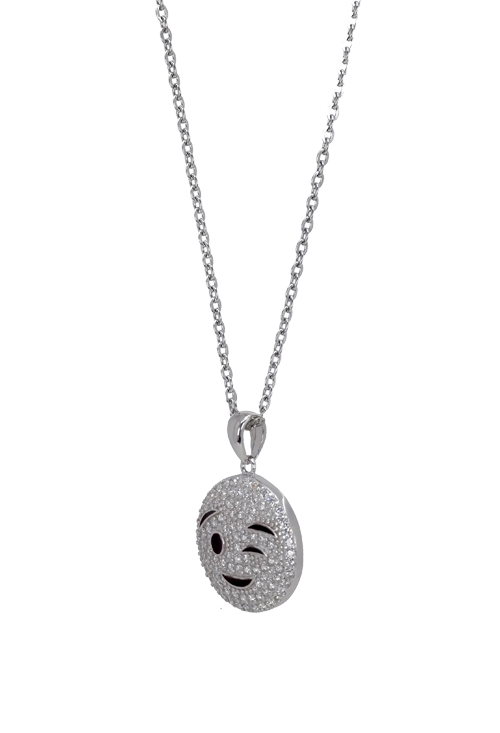 Gargantilla en acero plata y circonitas emoticono cara con guiño de 15mm en plata cuajado de circonitas y acabado con esmalte, hoy sale de su plataforma virtual para convertirse en colgante físicos que puedas llevar y mostrar a la gente tu estado,
