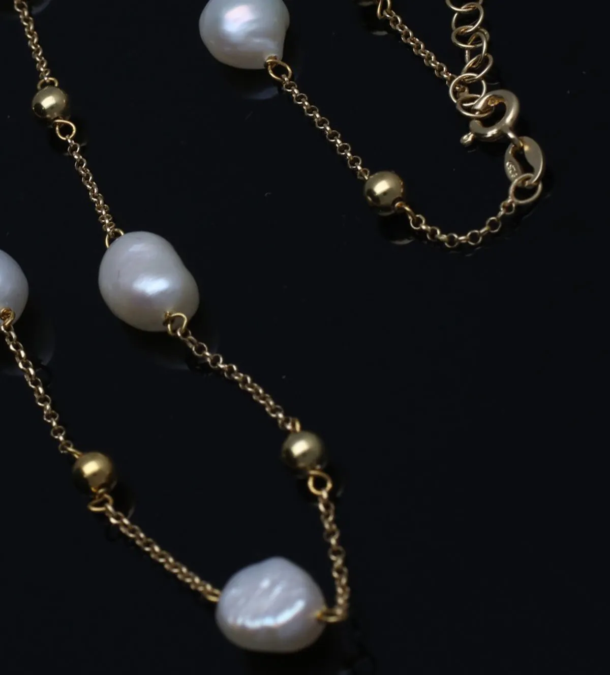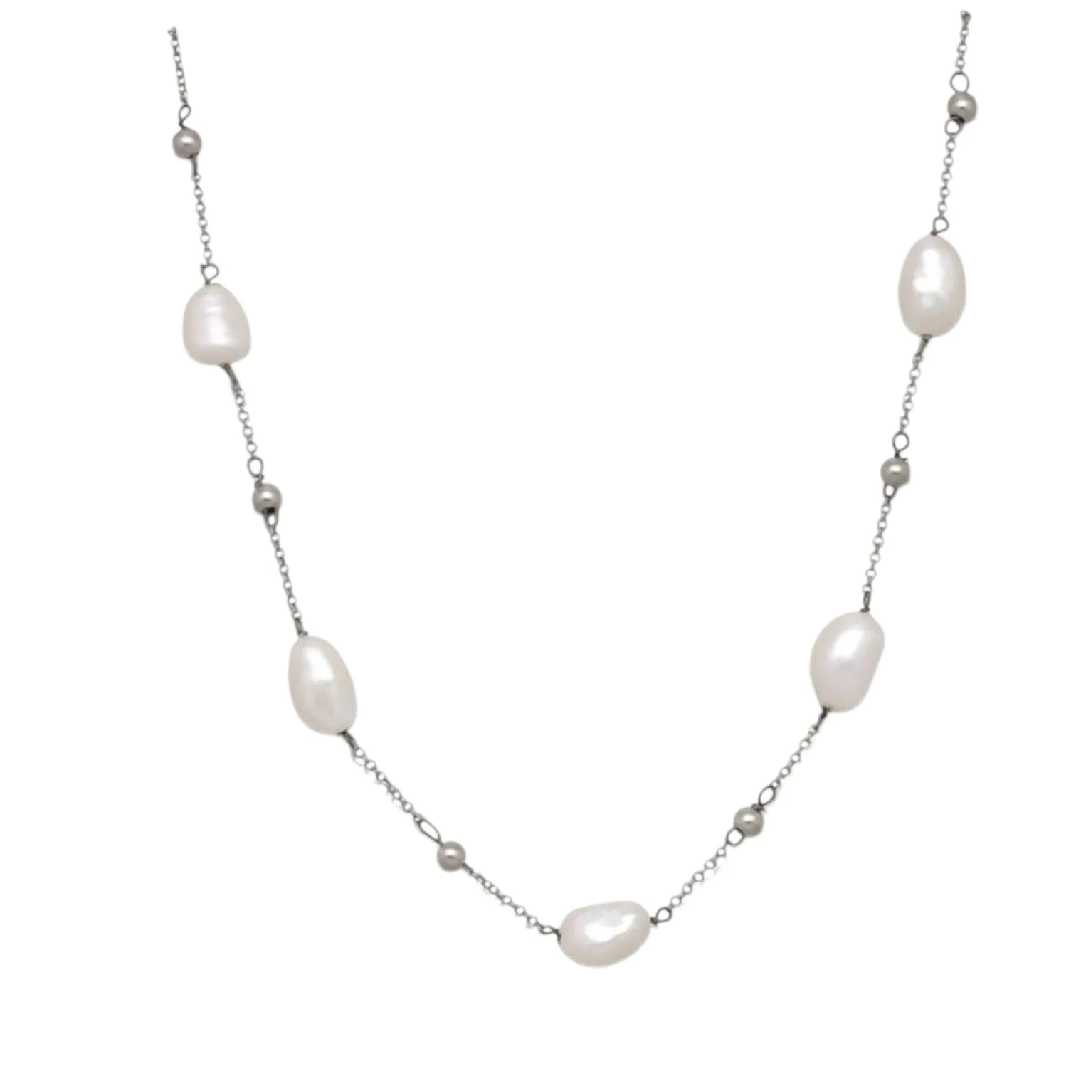 El diseño destaca por su equilibrio entre sencillez y personalidad. La disposición alterna de las perlas barrocas y las bolitas de plata crea un ritmo visual elegante y sofisticado. Cada elemento ha sido integrado con precisión para lograr un resultado armonioso, donde las perlas se convierten en el centro de atención sin eclipsar la delicadeza de la cadena. Este collar de perlas refleja una estética atemporal que se adapta a distintos estilos y generaciones.