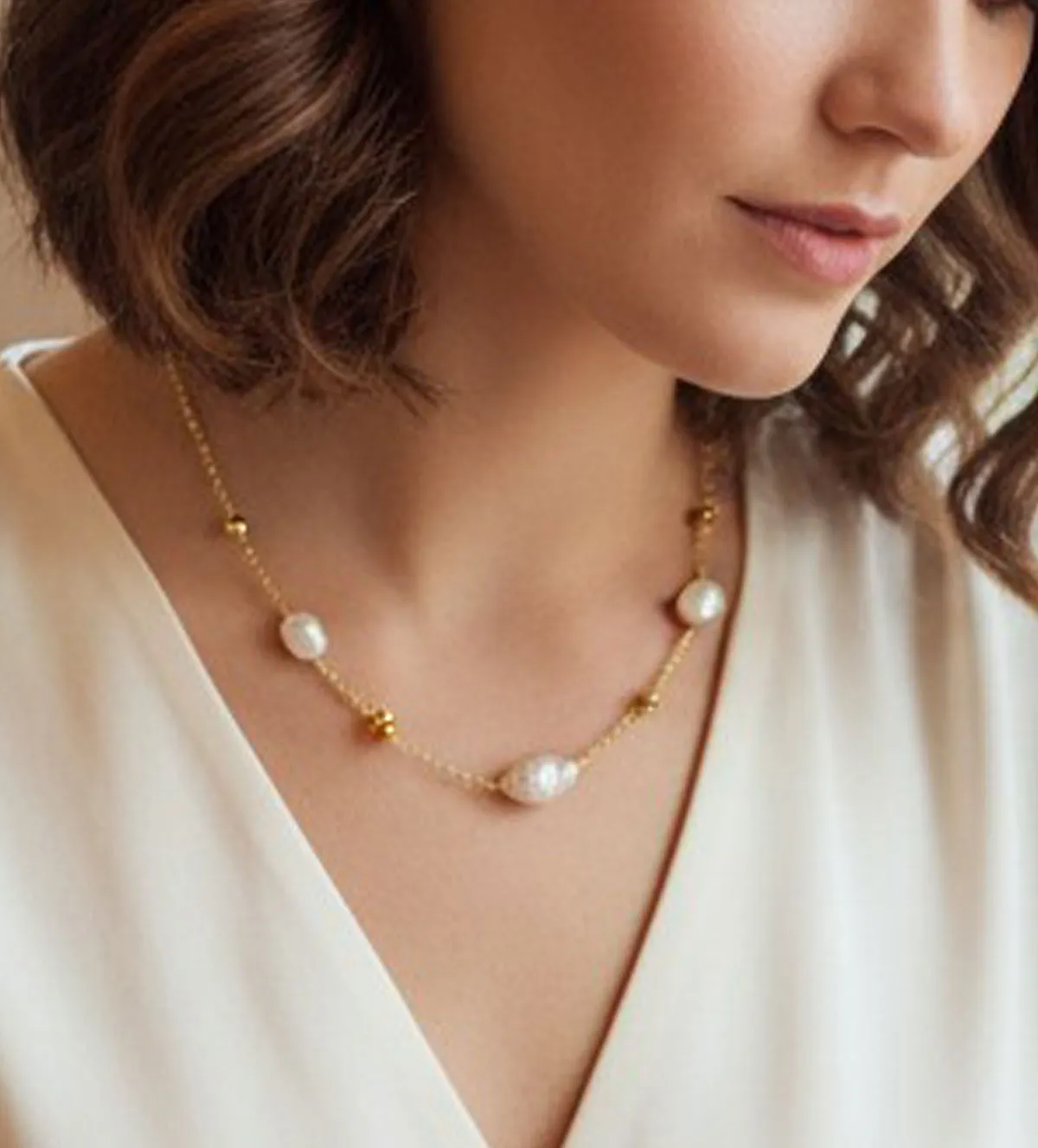 Entre sus principales cualidades destaca la combinación de perlas barrocas, que hacen que cada joya sea ligeramente diferente a otra. Esta singularidad convierte al collar de perlas en una pieza especial, ideal para quienes buscan un complemento con identidad propia. Su diseño ligero y equilibrado permite llevarlo durante horas con total comodidad, mientras que su estética refinada lo convierte en un básico imprescindible dentro de cualquier joyero.