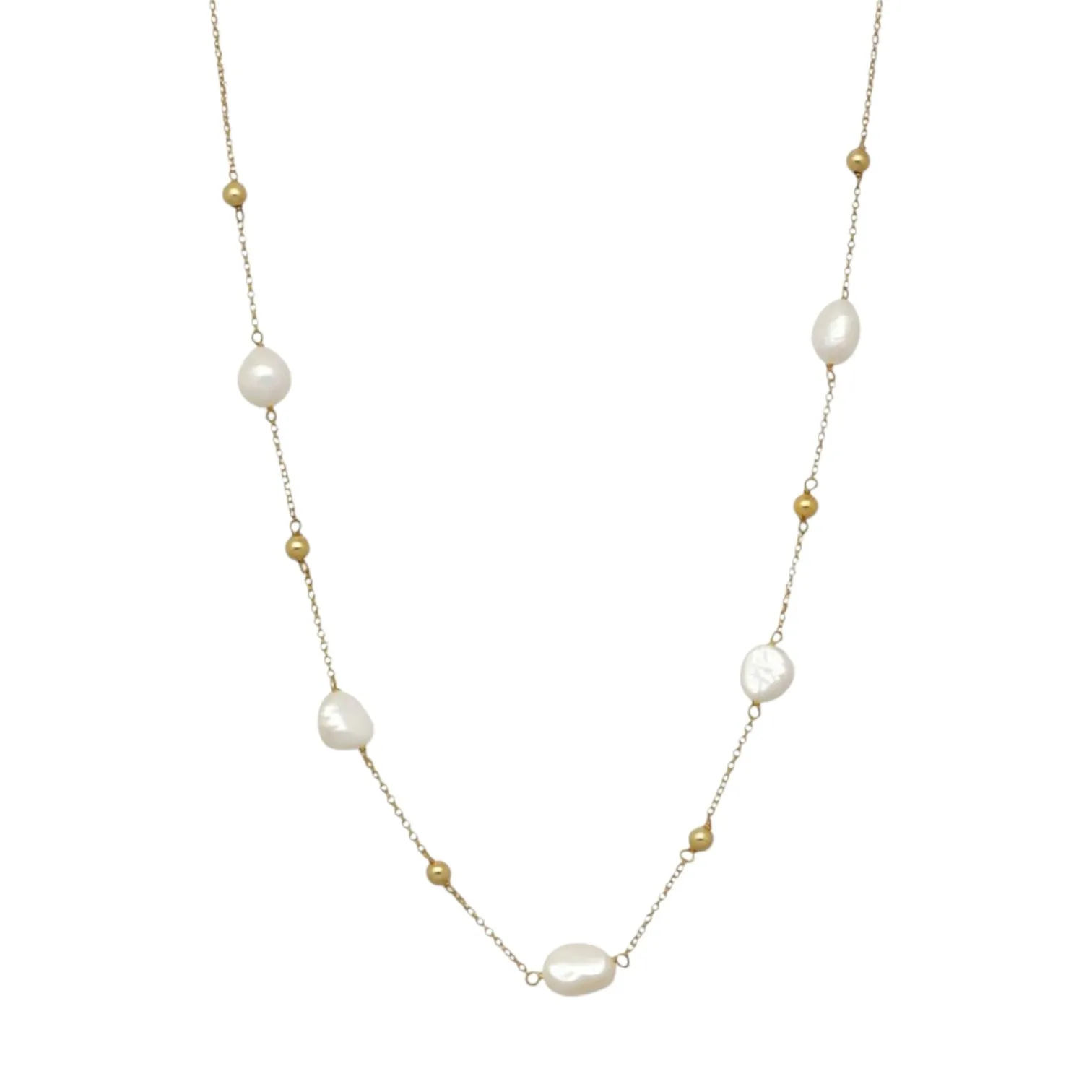 La pieza está elaborada en plata de ley, reconocida por su durabilidad, resistencia y brillo elegante. La cadena fina de eslabones tipo rolo aporta ligereza visual y comodidad, creando una base delicada que realza el conjunto. Las entrepiezas de bolitas de plata se combinan armoniosamente con perlas cultivadas barrocas, cuidadosamente seleccionadas por su belleza natural. Estas perlas presentan formas orgánicas y únicas, con unas medidas aproximadas de 8 x 12 mm, lo que refuerza el carácter exclusivo de cada collar. La calidad de los materiales garantiza una joya pensada para perdurar en el tiempo.