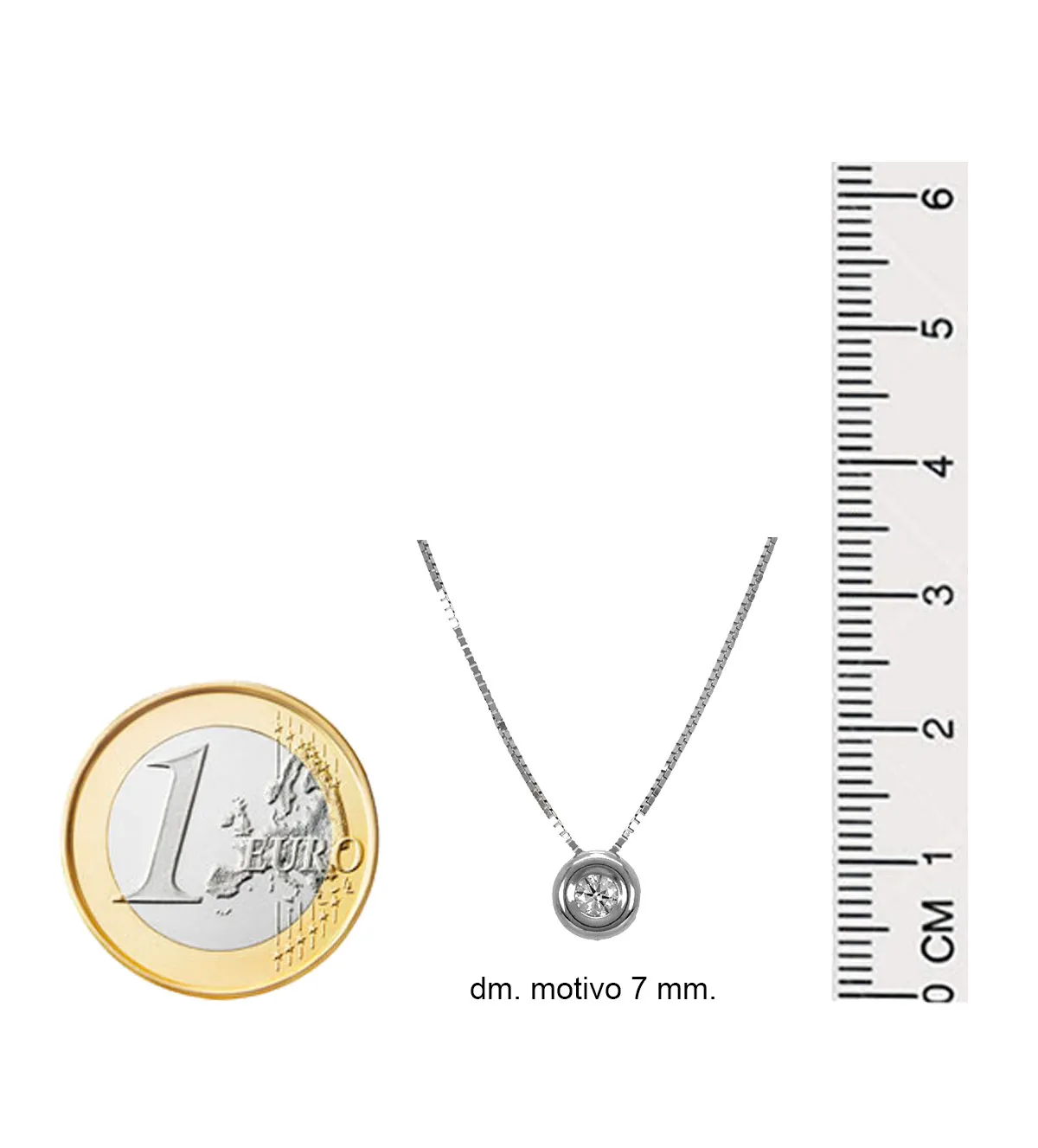 | Medidas | Gargantilla de oro con diamante largo adaptable 40-43 cm. diámetro chatón 7 mm. |