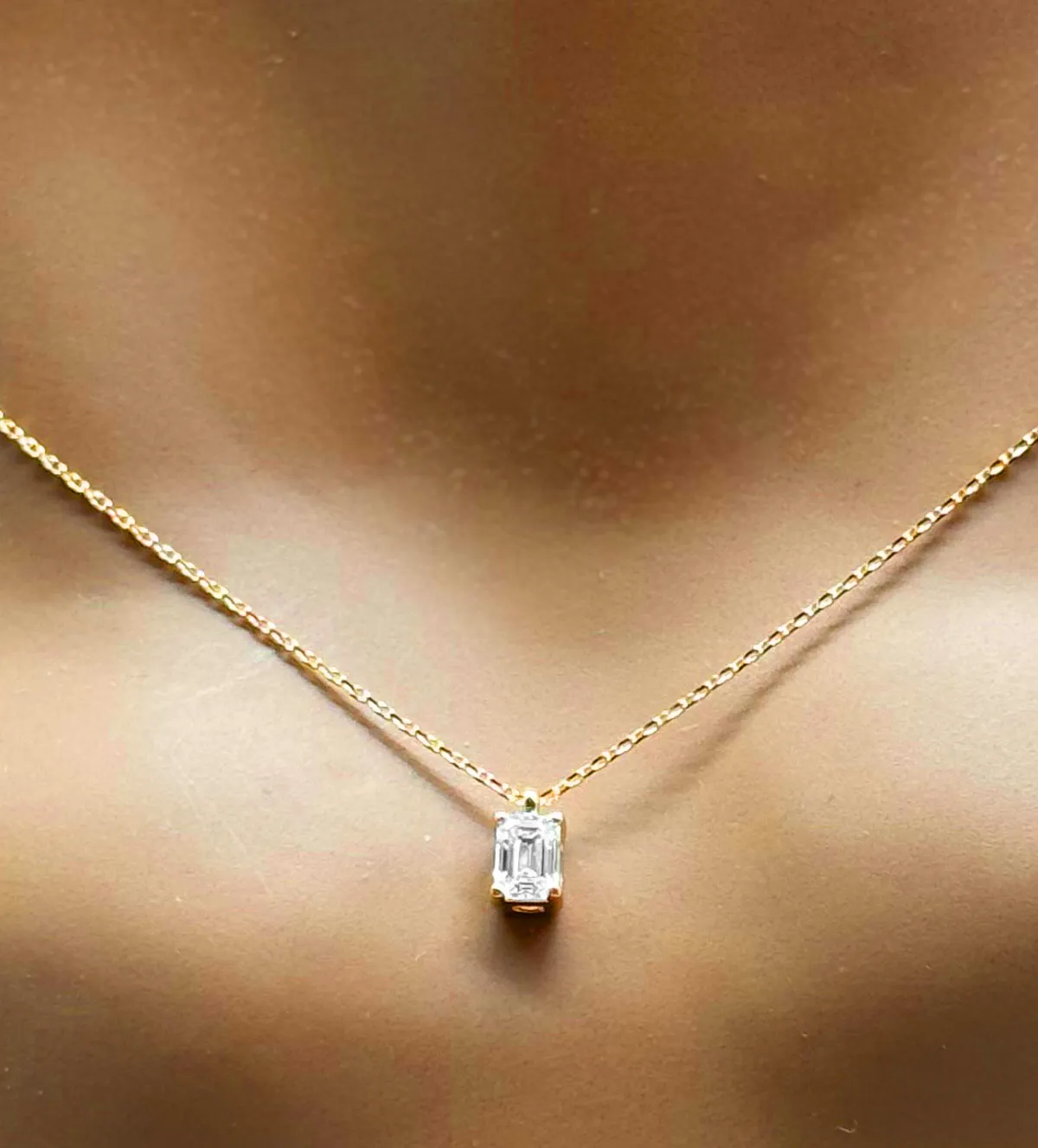 Uno de los aspectos más destacados de esta gargantilla de oro es su capacidad para transmitir lujo a través del minimalismo. El diamante talla esmeralda ofrece un tipo de brillo diferente al de otras tallas, más sobrio y elegante, ideal para quienes buscan una joya refinada y con personalidad.