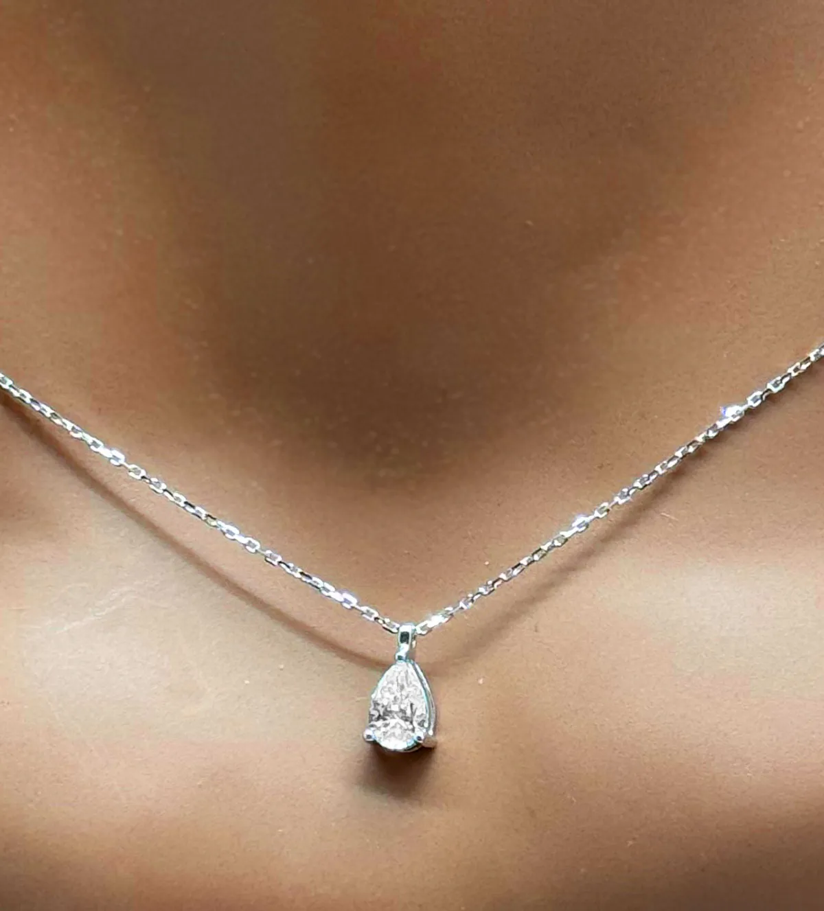 Uno de los grandes valores diferenciales de esta gargantilla de oro es su capacidad para adaptarse a cualquier momento. El diamante natural talla pera aporta un brillo elegante y refinado, mientras que el oro blanco rodinado garantiza una apariencia siempre impecable.
