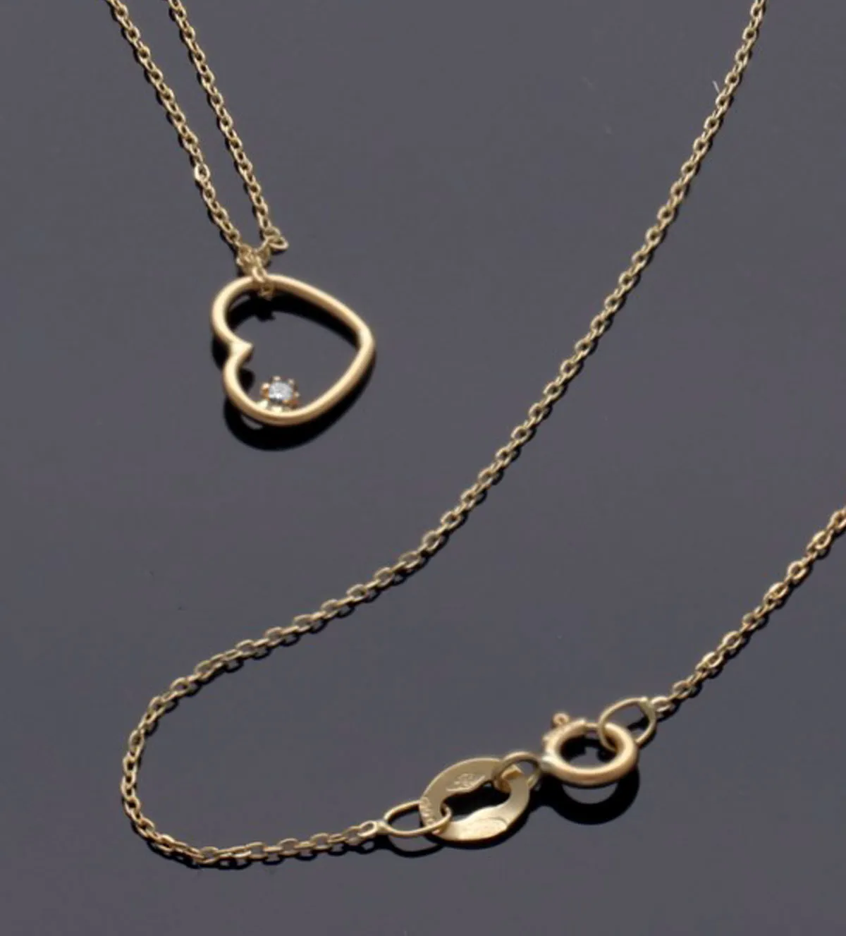 El corazón representa el amor, la conexión y los sentimientos sinceros. Al estar atravesado por la cadena, el diseño evoca la idea de que el amor nos atraviesa y nos une. El diamante, por su parte, simboliza la pureza, la eternidad y el compromiso. Esta gargantilla de oro es perfecta para regalar a una pareja, hija o amiga cercana, transmitiendo cariño de forma elegante.
