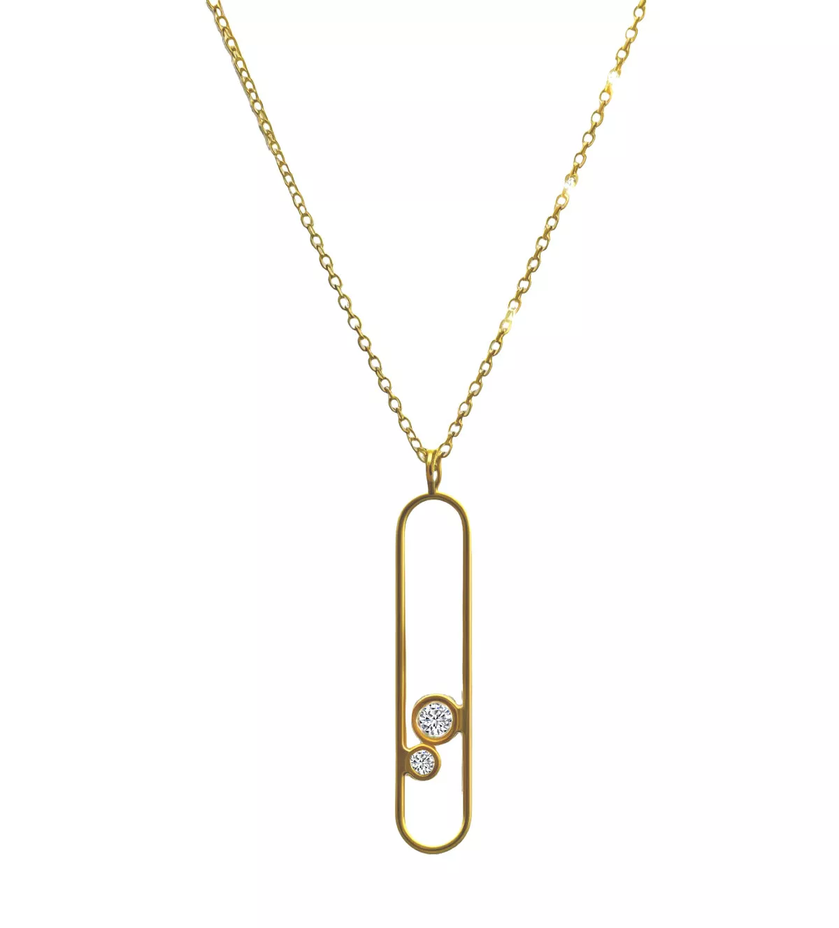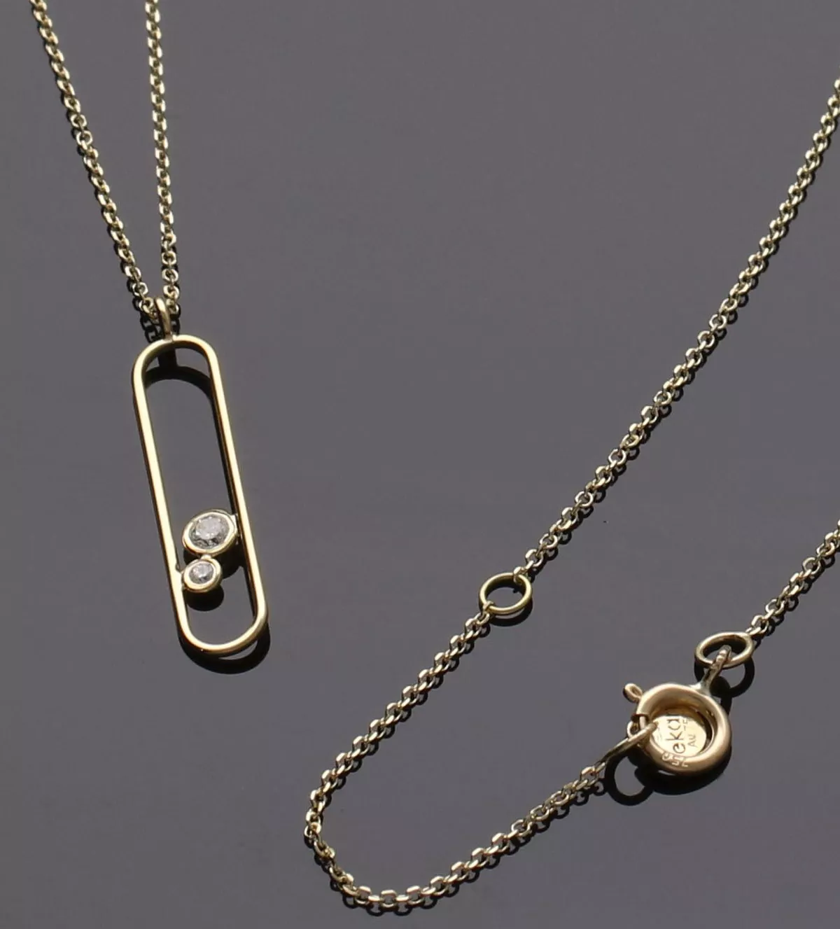 Una de las características más destacadas de esta gargantilla es su diseño único con un motivo ovalado. Los dos pequeños diamantes que adornan el motivo añaden un toque de brillo y elegancia, haciendo que esta joya sea verdaderamente especial. Además, la posibilidad de ajustar la longitud de la cadena ofrece versatilidad, permitiéndote adaptar la gargantilla a diferentes estilos y ocasiones. Esta pieza es una manifestación de lujo y sofisticación que no pasa desapercibida.
