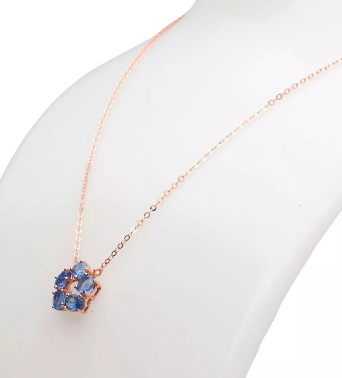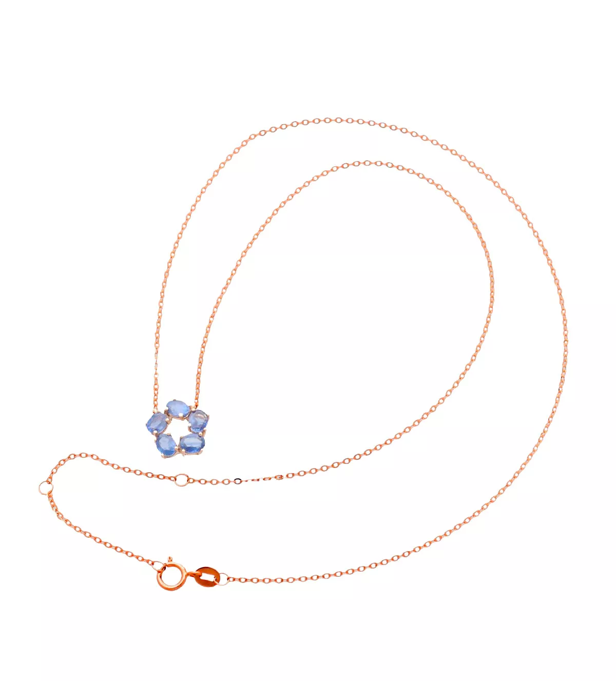 La gargantilla de oro rosa presenta una cadena fina de eslabones forzados y cierre de reasa, ajustable a dos largos distintos para adaptarse a tu escote. Su motivo central es un círculo formado por cinco zafiros de talla ovalada, engastados en garras individuales. Aprovecha nuestro descuento especial para venta online y haz tu mejor compra. ¡Stock muy reducido!