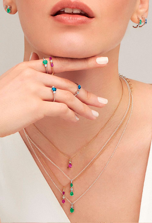 Gargantilla de plata con esmeraldas y diamantes, el colgante Soneto es un verso romántico y comprometido que luce en el cuello de cada mujer de manera única, como si hubiera estado diseñado especialmente para cada una de ellas.