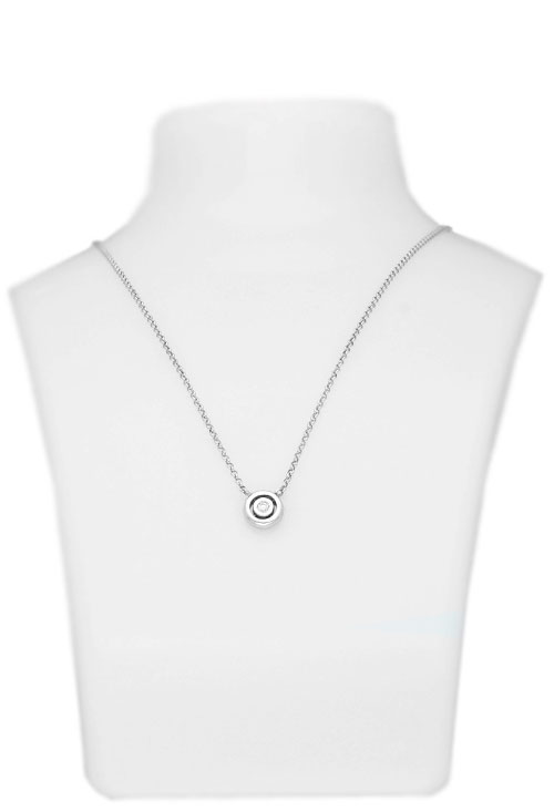 Gargantilla Grand Lumineux, plata con diamante, una joya que se va a lucir en una zona tan delicada como el cuello de una mujer, un detalle ideal con el que celebrar una ocasión especial. La gargantilla consta de una cadena de eslabones de la que cuelga un chatón que engasta un diamante talla brillante de 2 mm.