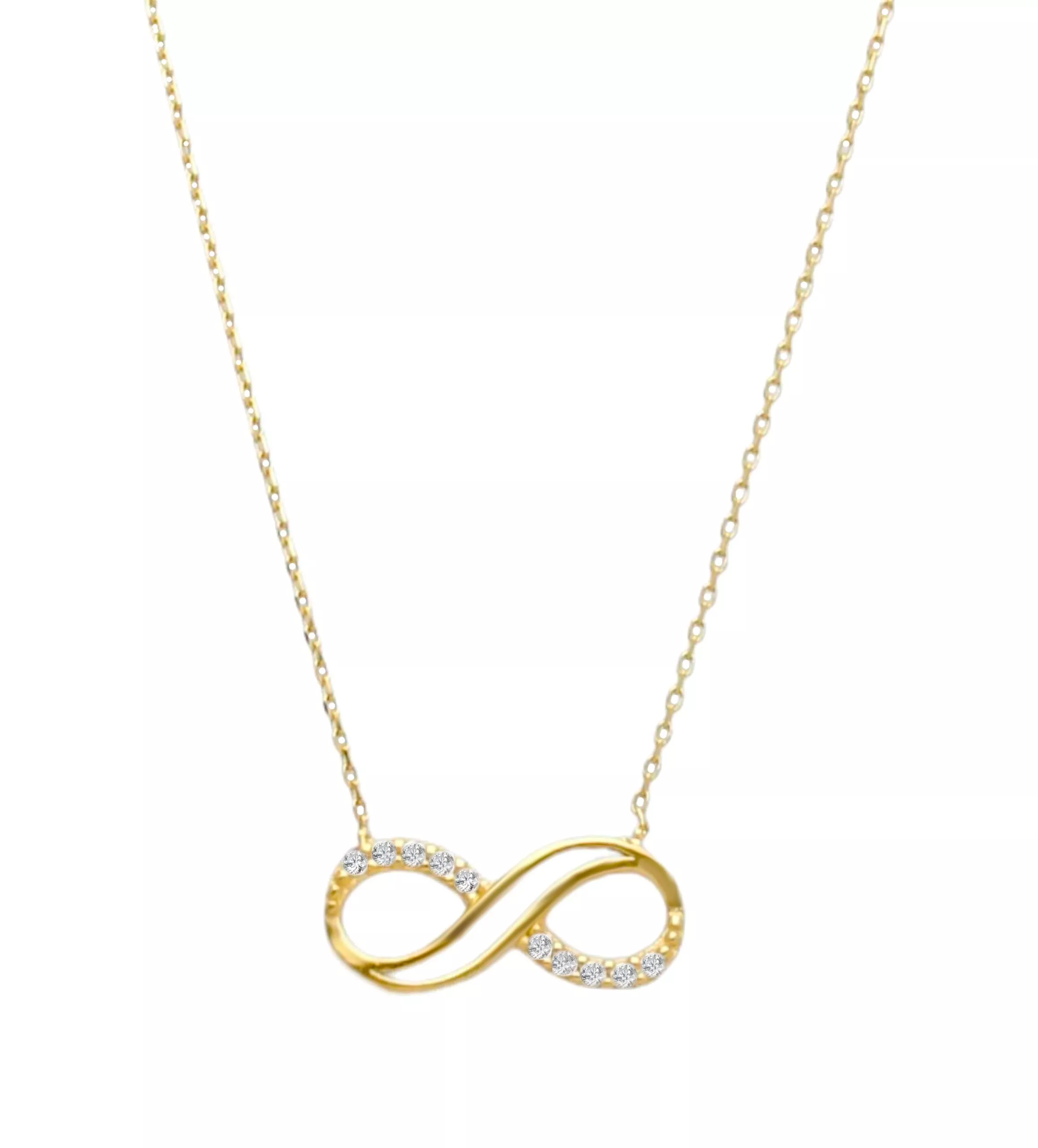 Gargantilla de oro amarillo 18k motivo infinito, ¡Brilla con elegancia y estilo con nuestra gargantilla de oro amarillo 18 kilates! Esta cadena fina de eslabones forzados está adornada con un hermoso motivo del amor, simbolizando el infinito, y decorada con circonitas que le dan un toque de brillo extra. ¡Un accesorio perfecto para las mujeres que desean destacarse y expresar su estilo único!