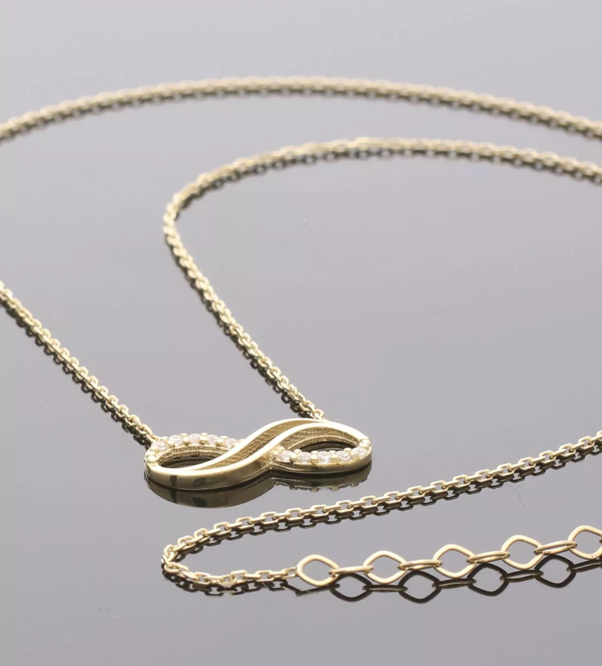 Detalle Exquisito: Motivo Infinito de Oro y Circonitas