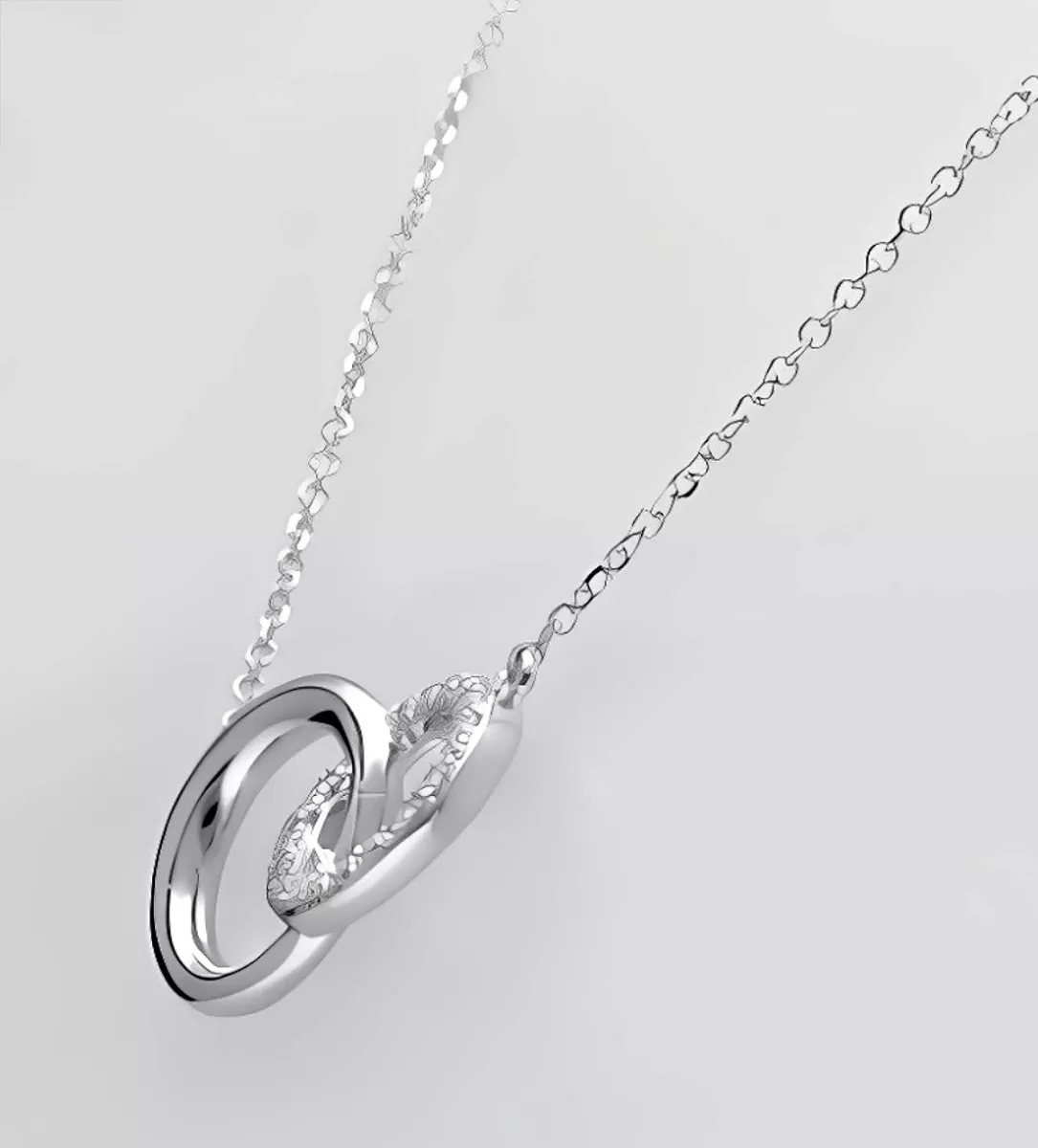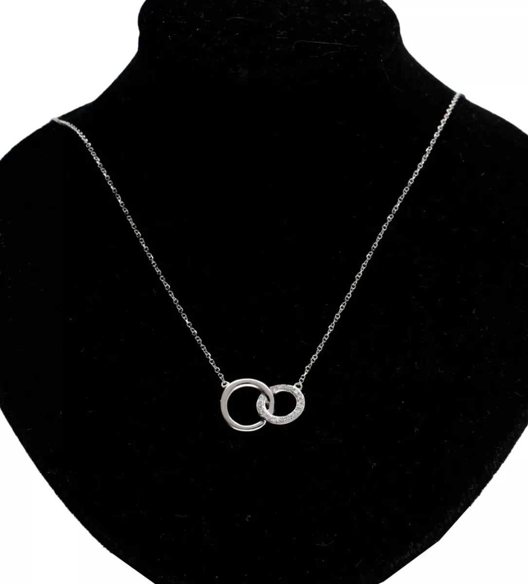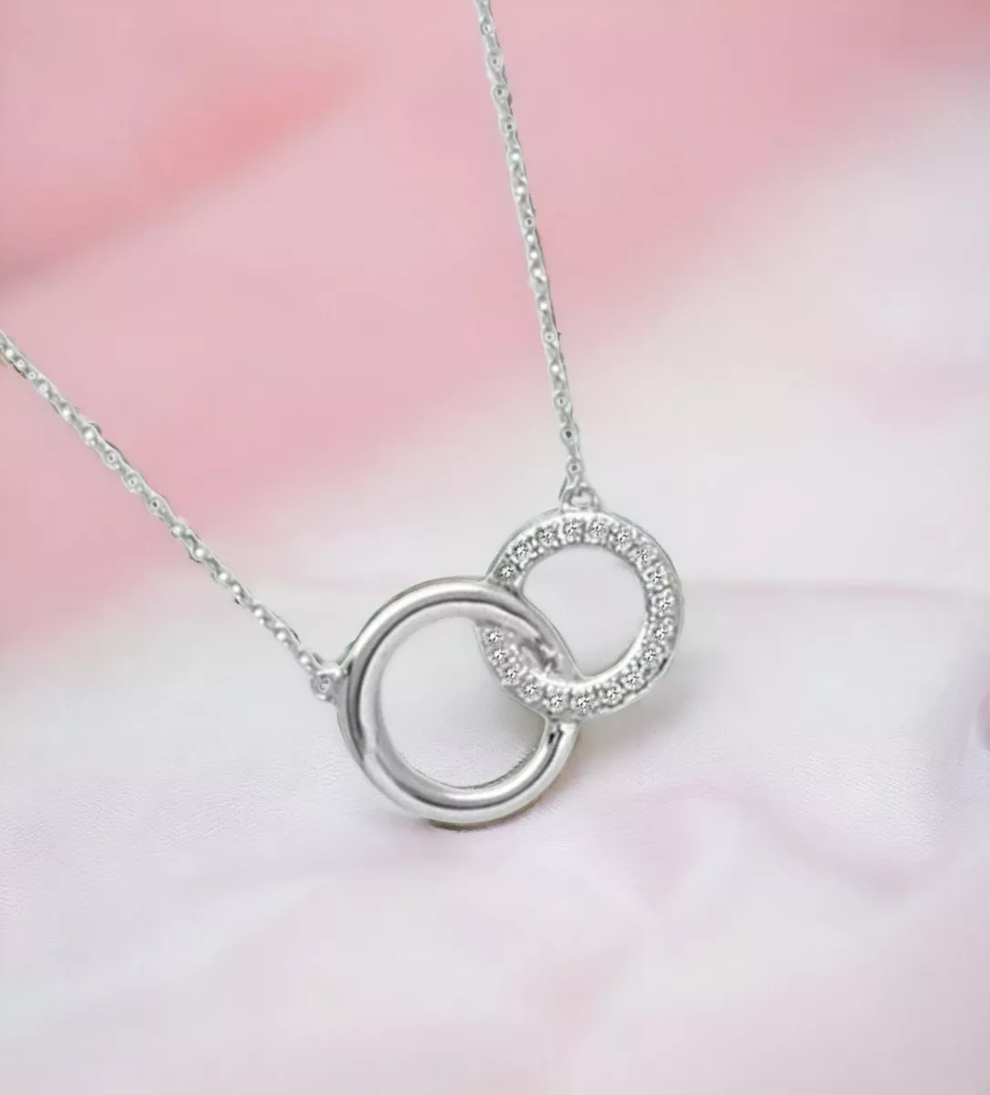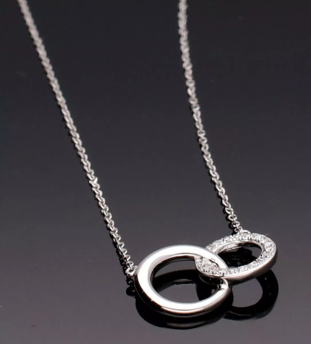 El diseño de los dos círculos enlazados simboliza la conexión, la unión y la eternidad. El círculo, en muchas culturas, es un símbolo de perfección y continuidad. Este colgante de oro con diamantes se convierte en una joya llena de significado, ideal para regalar en momentos importantes como aniversarios, bodas o celebraciones que marcan un lazo especial entre dos personas. Los diamantes, por su parte, representan la dureza y la eternidad, haciendo de esta joya una declaración de amor duradero.