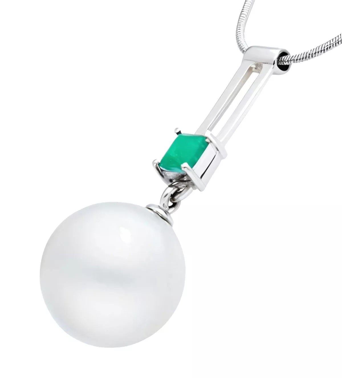 Gargantilla de oro blanco con perla australiana y esmeralda: lujo en cada detalle