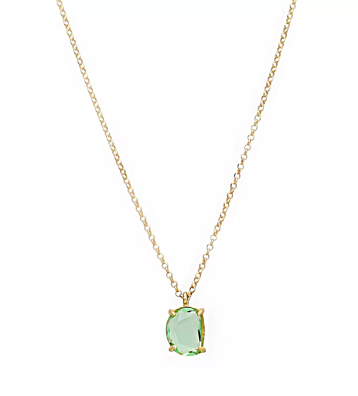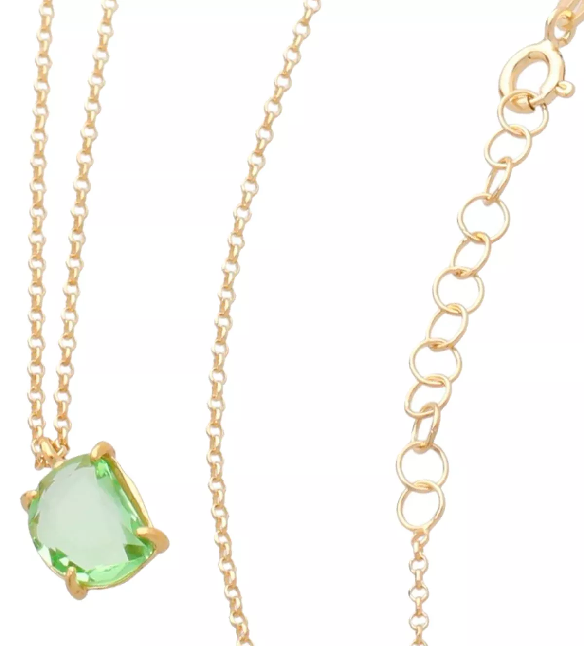 La estrella de esta pieza es un cuarzo olivina de talla irregular, cuyas facetas únicas atrapan la luz y hechizan la mirada. El cuarzo olivina no solo es conocido por su impresionante color verde, sino también por sus propiedades místicas. Se dice que esta piedra tiene la capacidad de atraer prosperidad y abundancia, además de proteger contra energías negativas. La olivina, también conocida como peridoto, es una gema que ha sido apreciada desde tiempos antiguos por sus cualidades protectoras y su vibrante color verde. Las facetas irregulares del cuarzo olivina en esta gargantilla permiten que la luz se refleje de manera única, creando destellos que capturan la atención y añaden un toque de magia a cada movimiento.