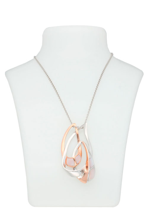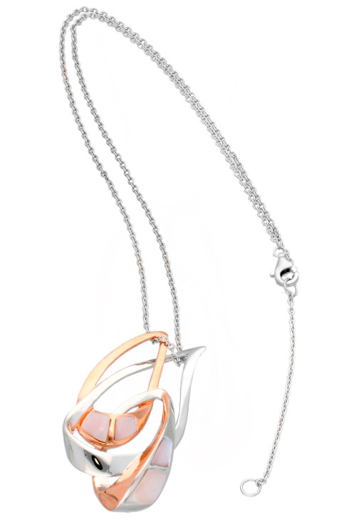 Gargantilla plata en la que se combinan colores y texturas de una forma magistral, la base de esta gargantilla es la plata, tanto en su estado natural como sometida a un proceso de baño en oro amarillo, todo esto acompañado de la madreperla, también conocida como nácar que junto con su diseño de formas redondeadas le otorgan a esta pieza de joyería una apariencia realmente bella, creada para realzar la belleza natural de la mujer.