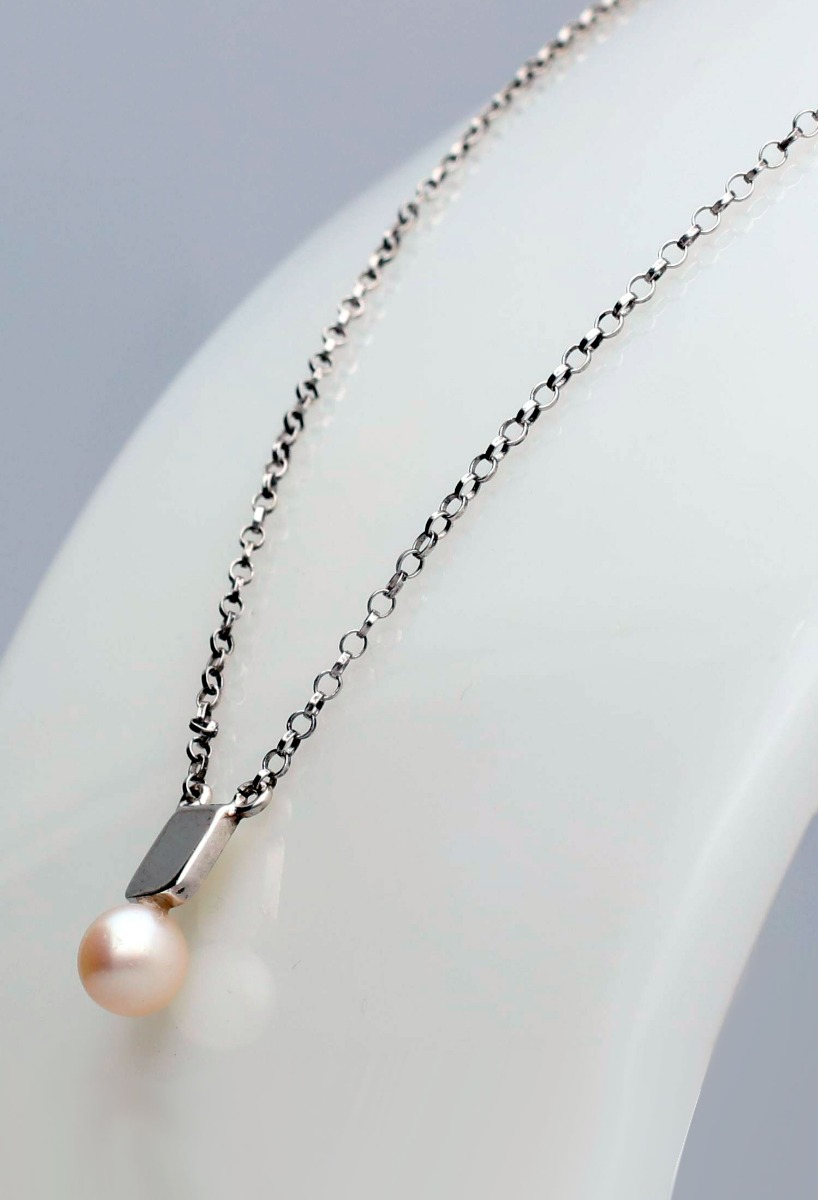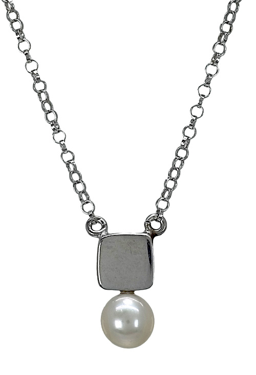 Gargantilla de plata con perla, la gargantilla de plata con un motivo de perla cultivada es una hermosa pieza de joyería perfecta para añadir un toque de elegancia a cualquier atuendo. Está hecha de plata de ley 925 mmas. y cuenta con una perla cultivada de 6 mm de diámetro colgando en el centro con una forma cuadrada sobre la misma. Esta gargantilla es una joya versátil que se puede usar tanto para eventos formales como casuales. Incluso es un regalo ideal para alguien especial. Esta hermosa gargantilla es una pieza de joyería clásica que se convertirá en uno de tus favoritos. Sometida a proceso de rodinado para conseguir que la plata brille más y dure en más tiempo en perfecto estado, motivo cuadrado sobre perla cultivada, colgando de una cadena de plata compuesta por eslabones tipo rolo.
