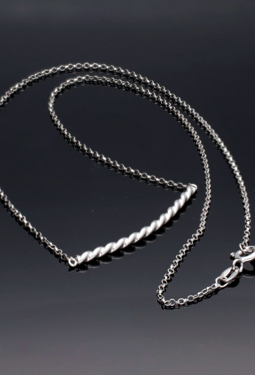 Gargantilla de plata de ley espiral elaborada en plata de ley de 925 milésimas, bañada en rodio para que la plata brille más y dure en perfecto estado durante mucho más tiempo, pues este tratamiento que se le hace a la plata evita su oxidación que hace que la plata se ennegrezca y parezca sucia.