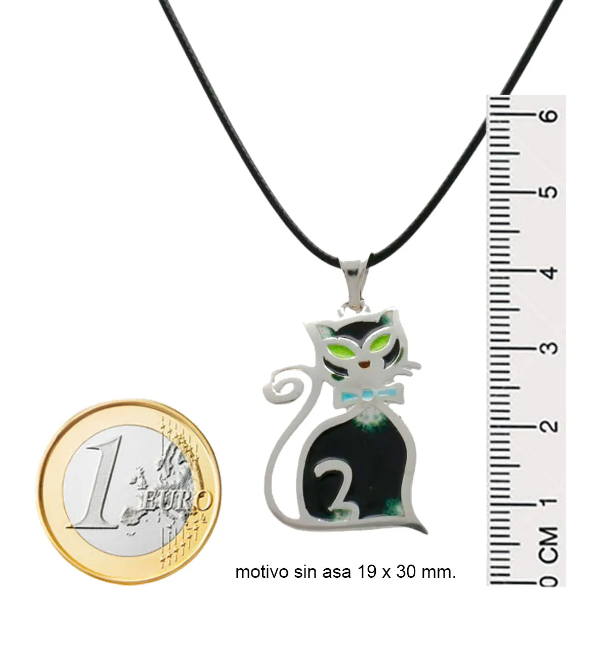 Gargantilla de plata única para amantes de los gatos. Gargantilla de plata con cordel textil negro, cierre tipo reasa y un dije en forma de gato esmaltado con vivos colores. Su diseño adorable y simbología positiva la convierten en el accesorio ideal para quienes buscan elegancia con personalidad. ¡Perfecta para regalar o lucir a diario! Producto en stock con entrega inmediata. Hazte con esta joya exclusiva antes de que se agote.