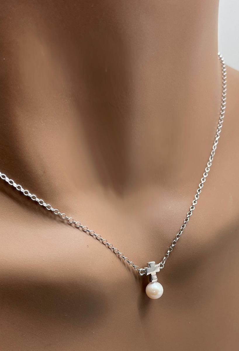 Gargantilla de plata motivo cruz sobre perla 266_023726-1-1